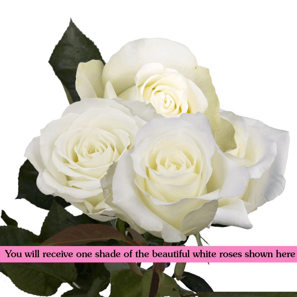 Make a grand statement with 100 fresh-cut white roses delivered to your doorstep. These stunning blooms, known for their beauty and symbolic meaning, are a favorite for weddings, elegant events, sympathy arrangements, or luxury gifts. Each stem is approximately 17 inches long and hand-selected for freshness before being shipped from our flower farms via FedEx or UPS. Our bulk white roses offer unbeatable value and quality, making them ideal for florists, event planners, and anyone looking to buy white roses online without paying retail markups. Whether you're styling centerpieces or sending a heartfelt gift, these wholesale white roses are a classic and sophisticated choice.