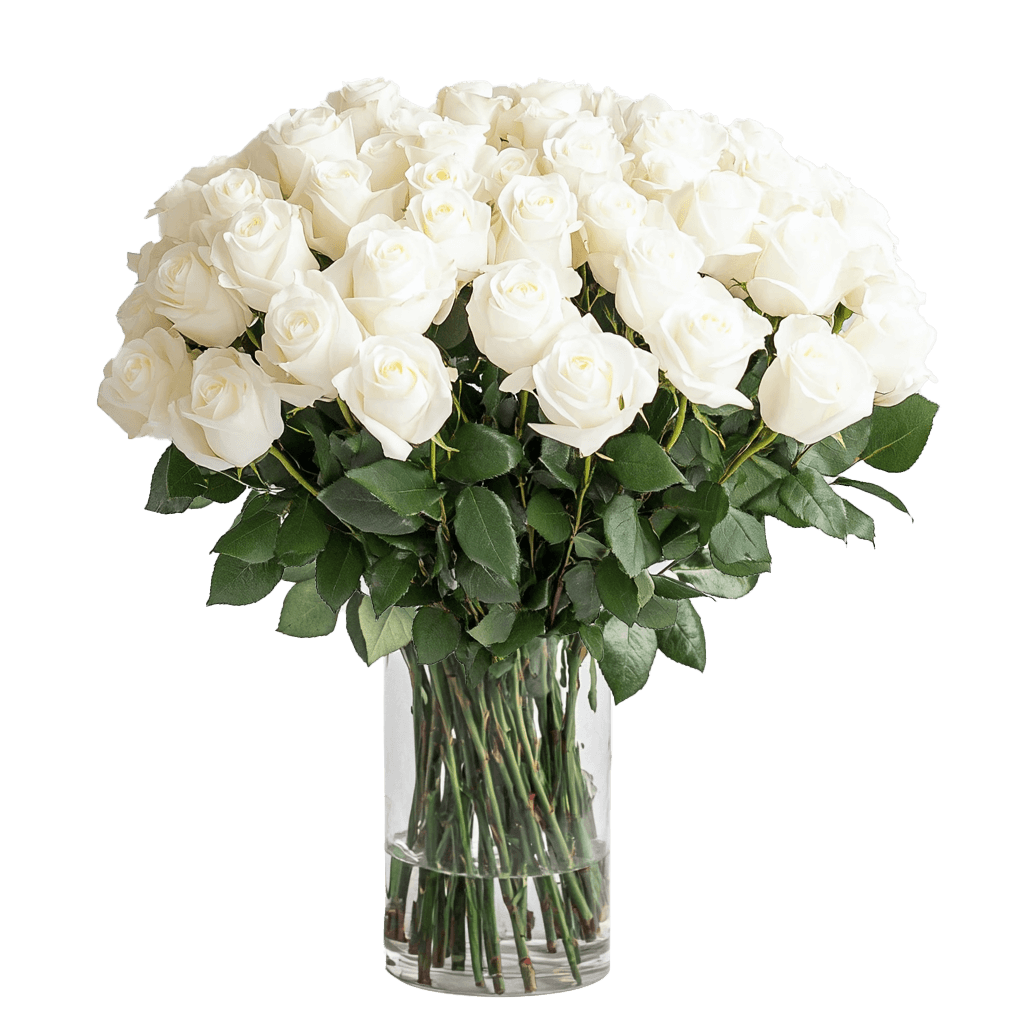 A hundred stems of white roses with complimentary next day florist delivery from our wholesale site. Get pristine white blooms today without worrying about cost or freshness.