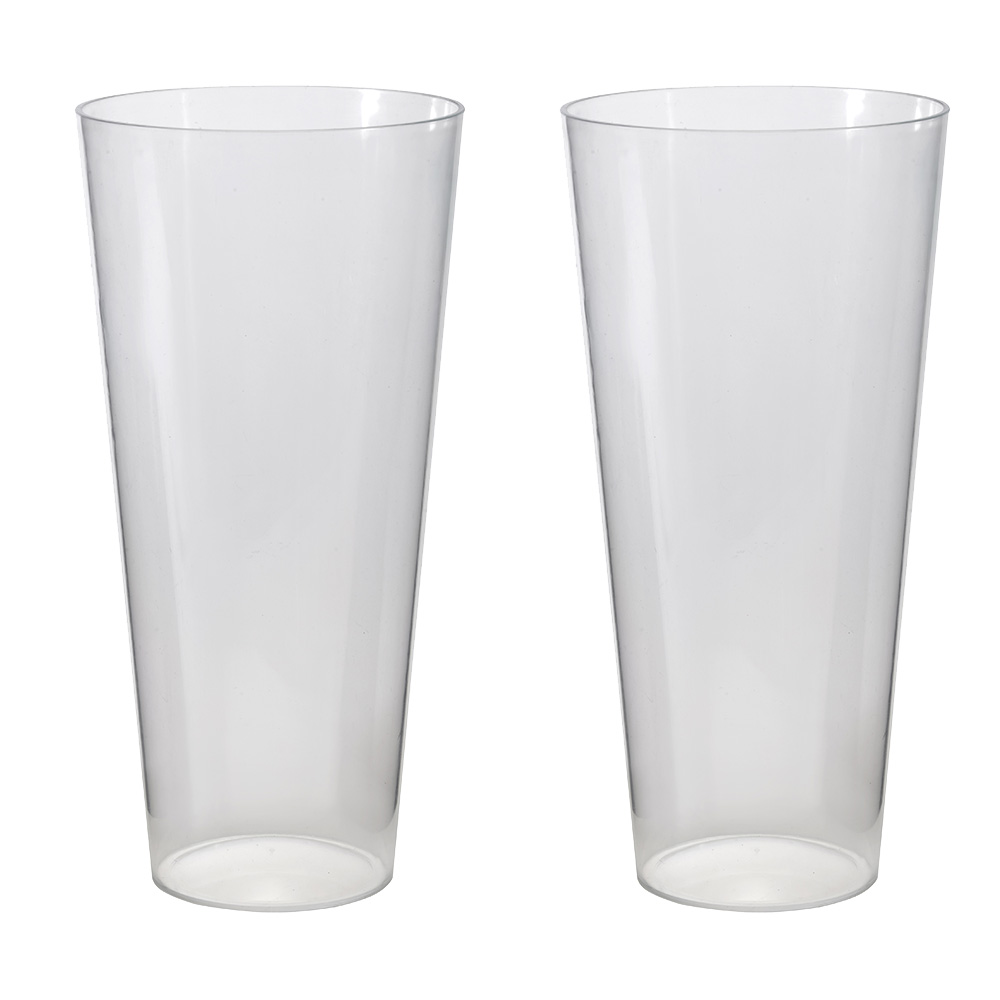 Stable polystyrene with high-gloss finish. Use in the cooler for an upscale display of bunches and stems Provides height and drama to event work with a similar look as glass while minimizing breakage concerns.