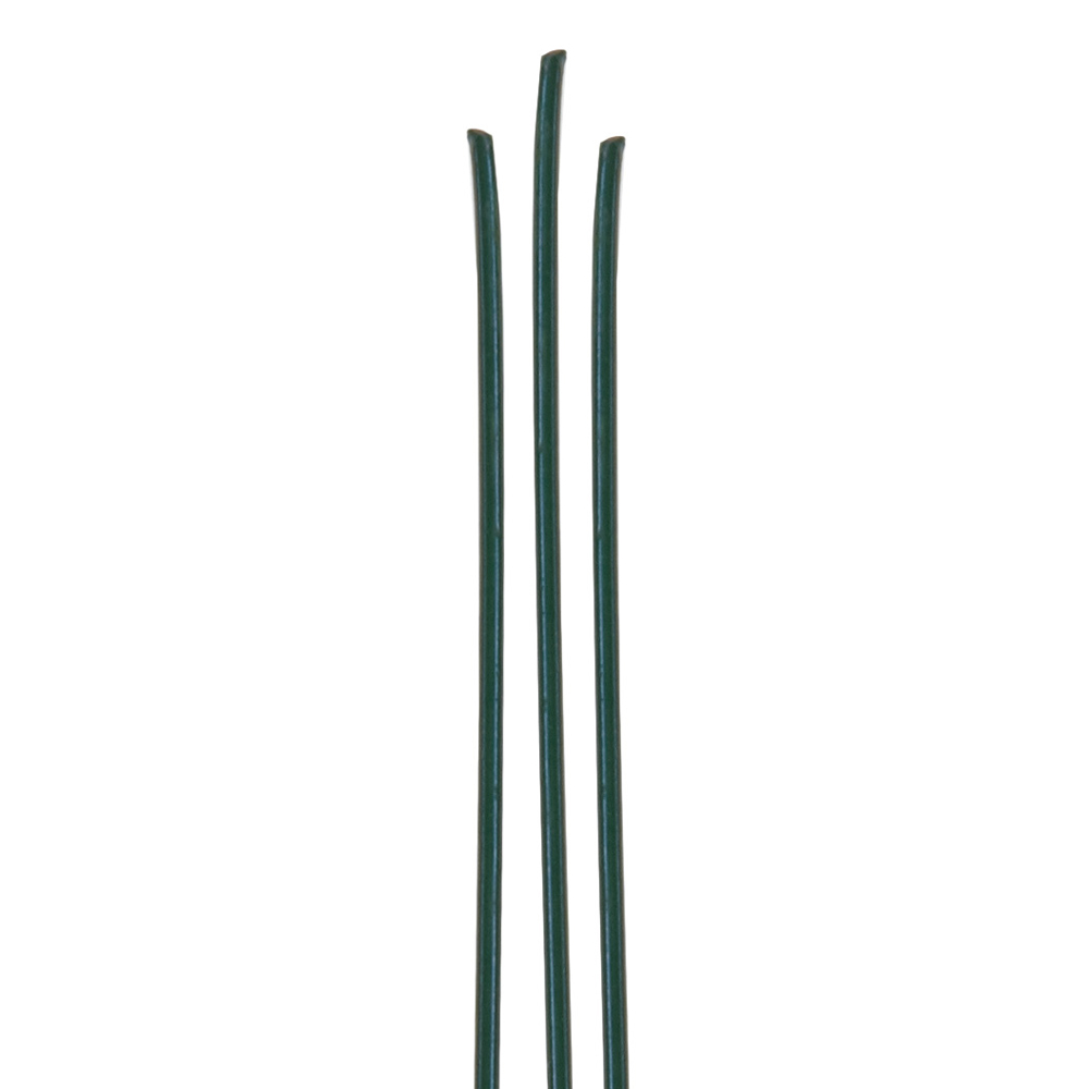 Triple coated painted wire with a dark green finish. Supportive of stems and secures materials to wreaths and forms.