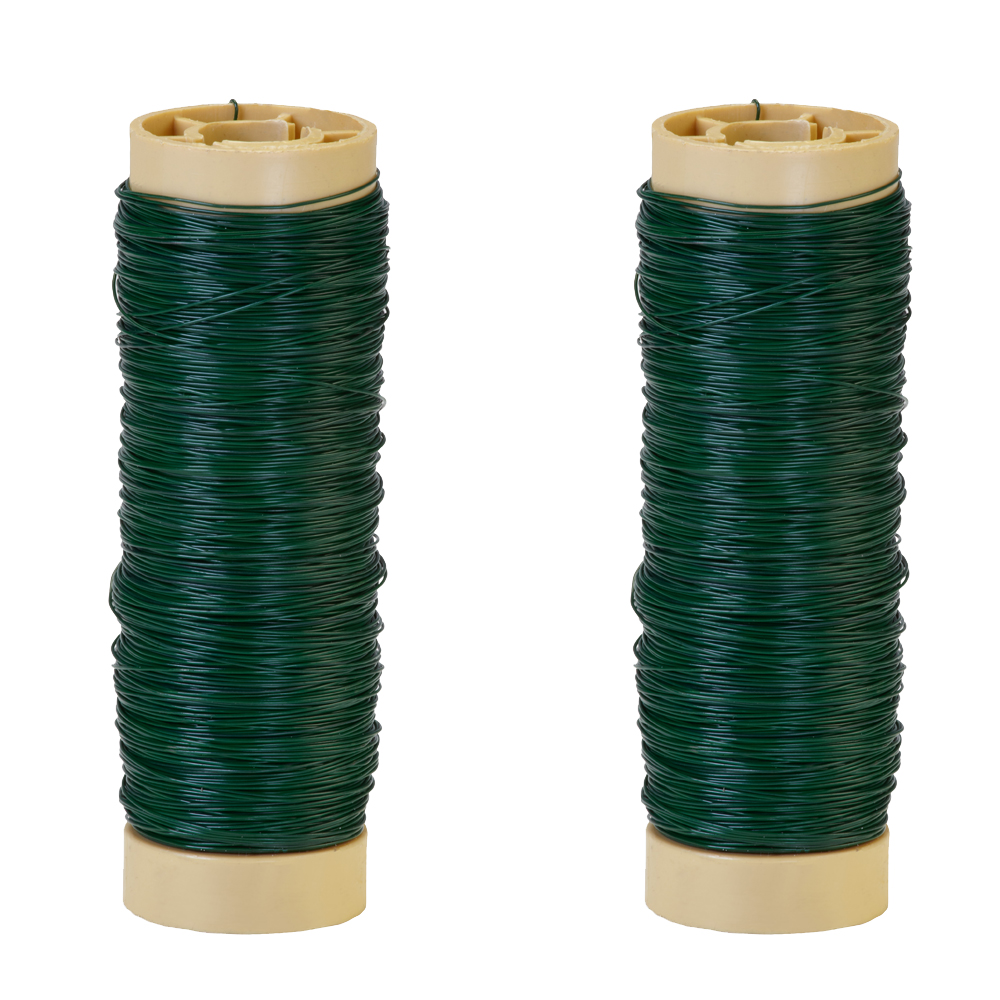 Triple coated painted wire with a dark green finish.