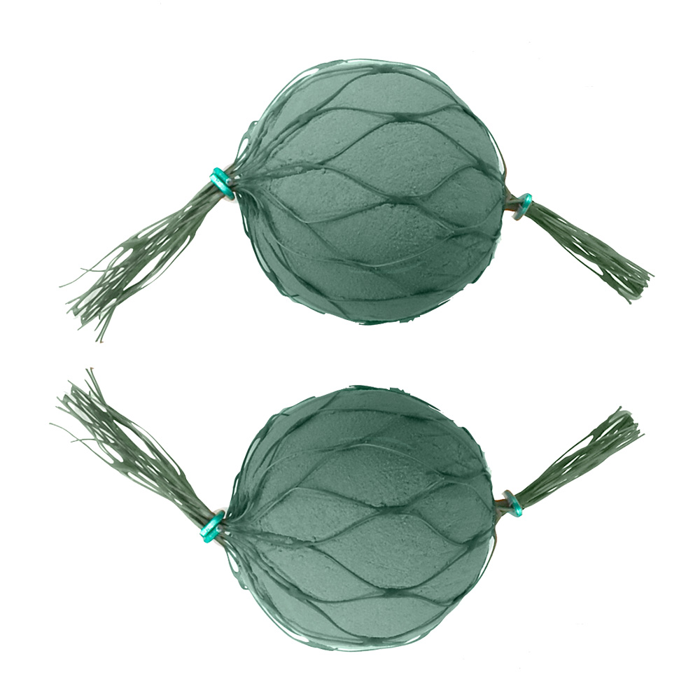 Pre-cut spheres made of Deluxe OASIS®Floral Foam Maxlife to securely hold the thickest of stems. Wrapped in sturdy, green flexible netting to ensure the integrity of the arrangement. Built-in hanger makes pomanders and kissing balls easy.