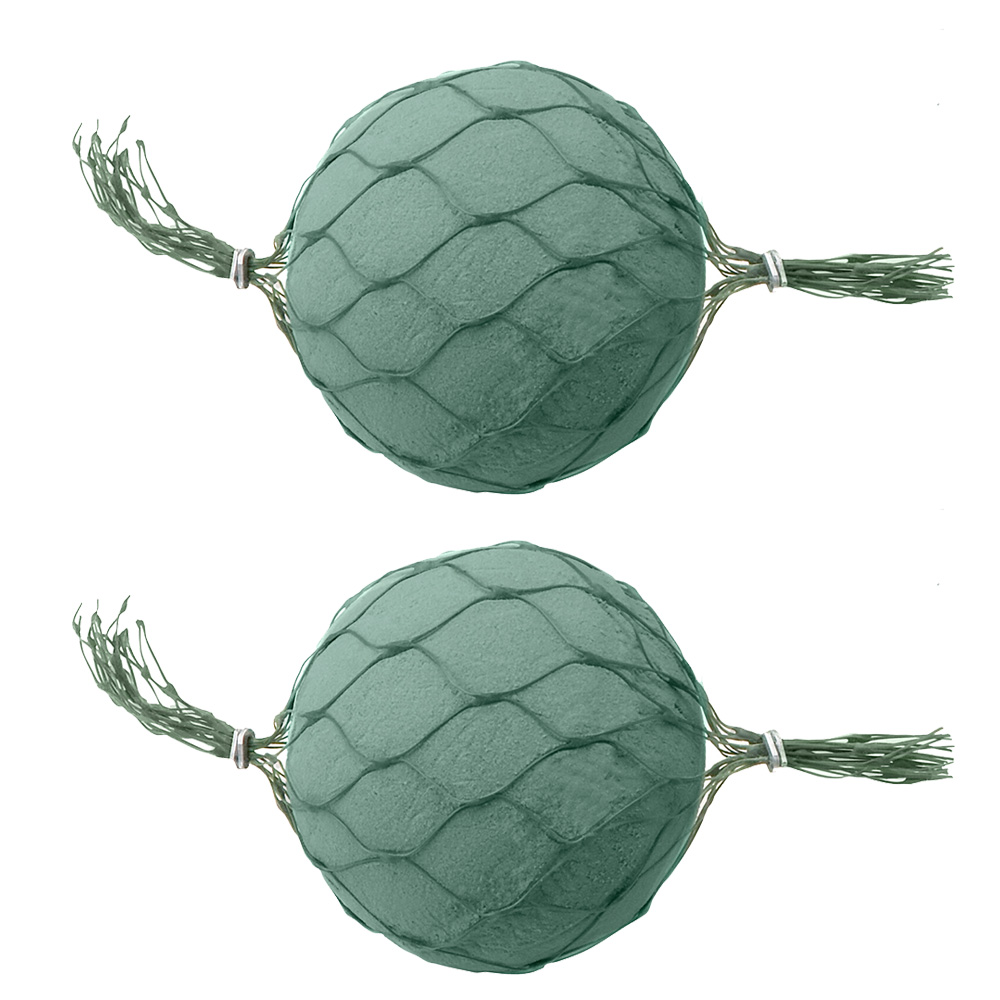 Pre-cut spheres made of Deluxe OASIS®Floral Foam Maxlife to securely hold the thickest of stems. Wrapped in sturdy, green flexible netting to ensure the integrity of the arrangement. Built-in hanger makes pomanders and kissing balls easy.