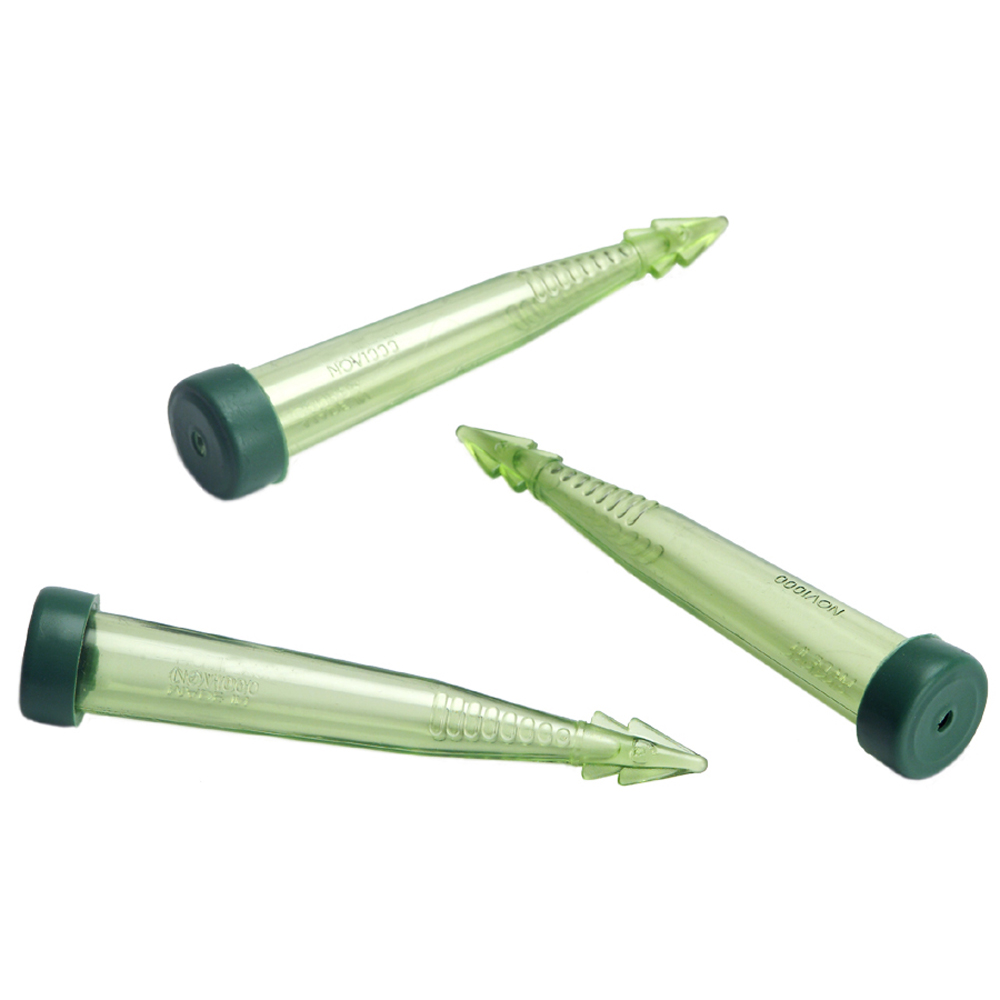 Light green polystyrene tube with green cap. Easy to insert and holds tight in dry foam and *STYROFOAM® brand plastic foam.