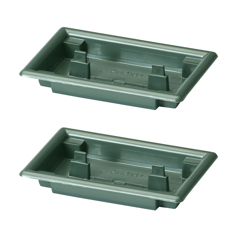 Low, stable tray provides an excellent base for small designs. 5" tray holds 1/3 brick floral foam.
