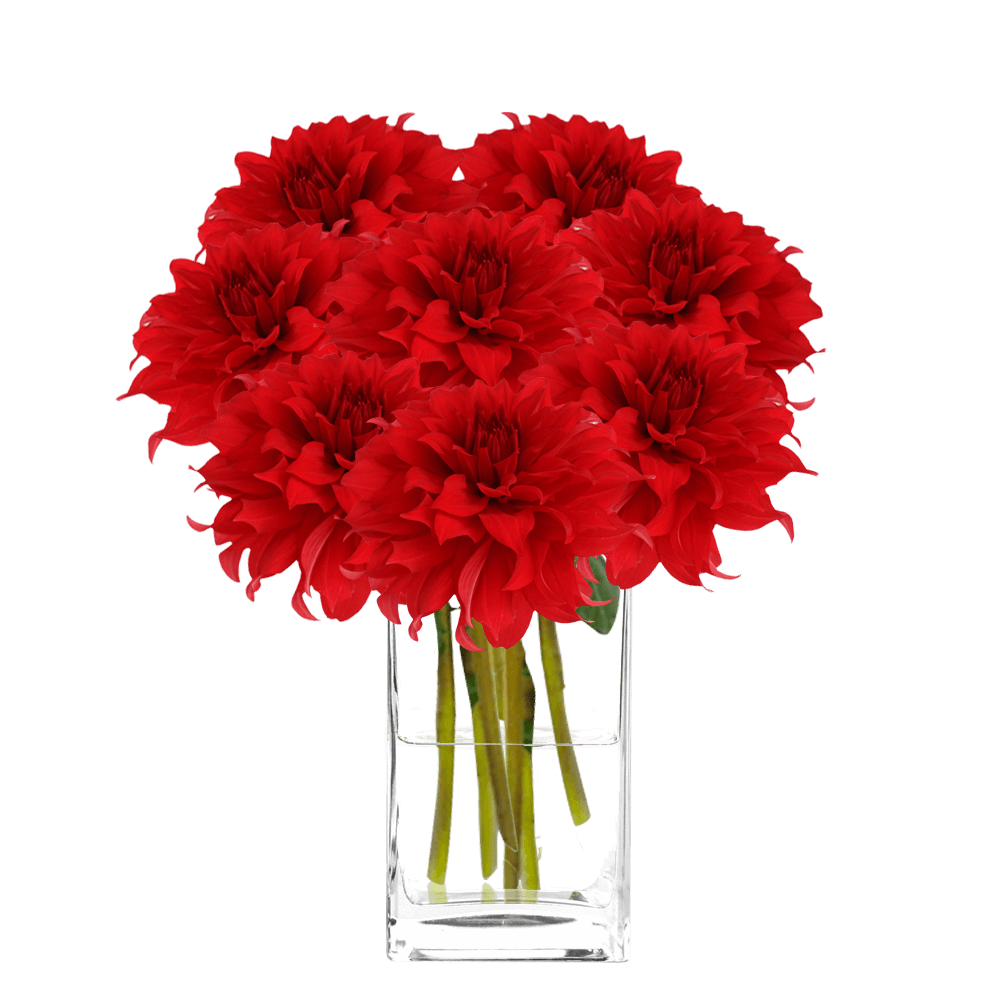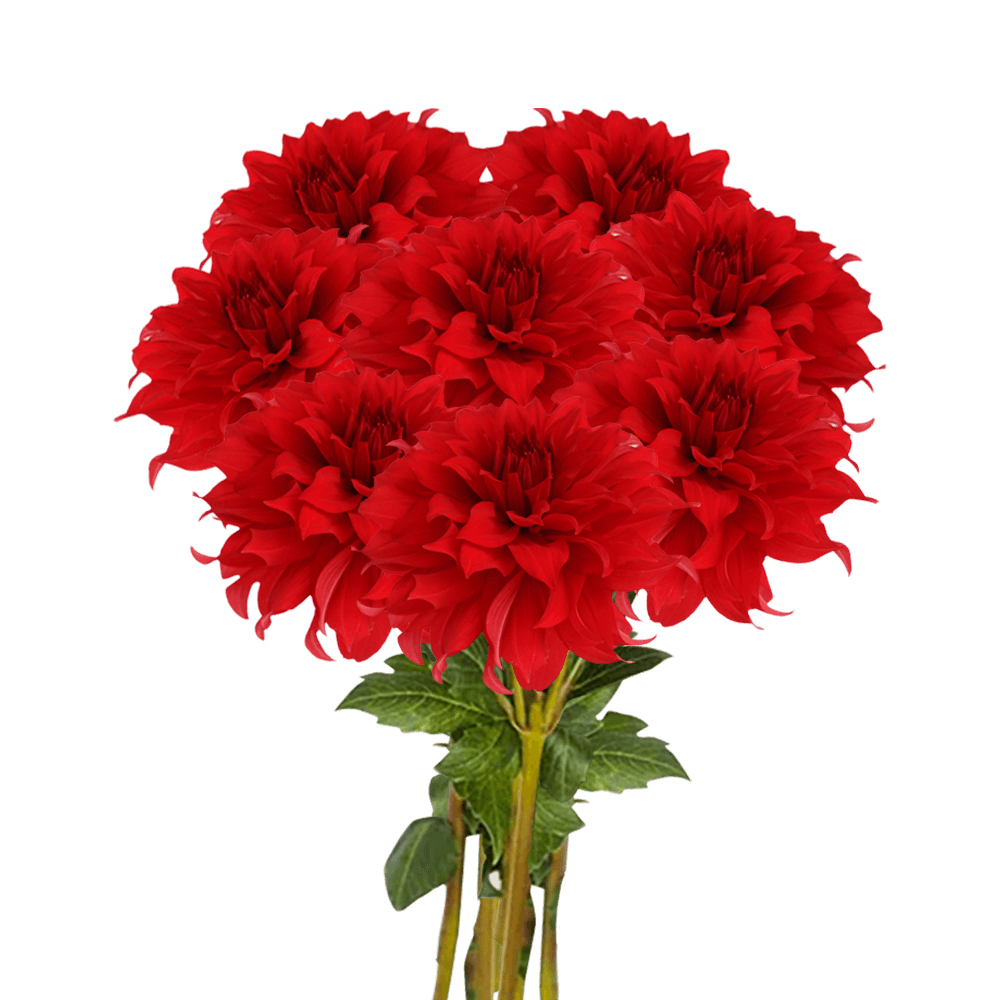 Garnet dahlias are a type of dahlia flower known for their deep, rich red color, resembling the gemstone garnet. These dahlias typically have large, fully double blooms with tightly packed petals that form a spherical shape. The flowers can grow up to 6 inches in diameter and are held on sturdy stems. Garnet dahlias bloom in our farms and are a popular choice for cut flower arrangements due to their striking color and long vase life. They are also a favorite for their easy care and may have a slight scent.