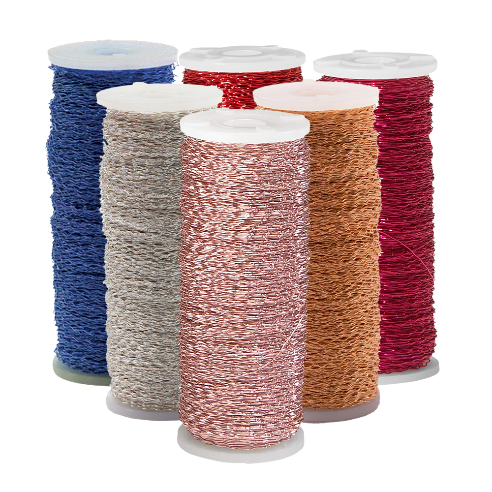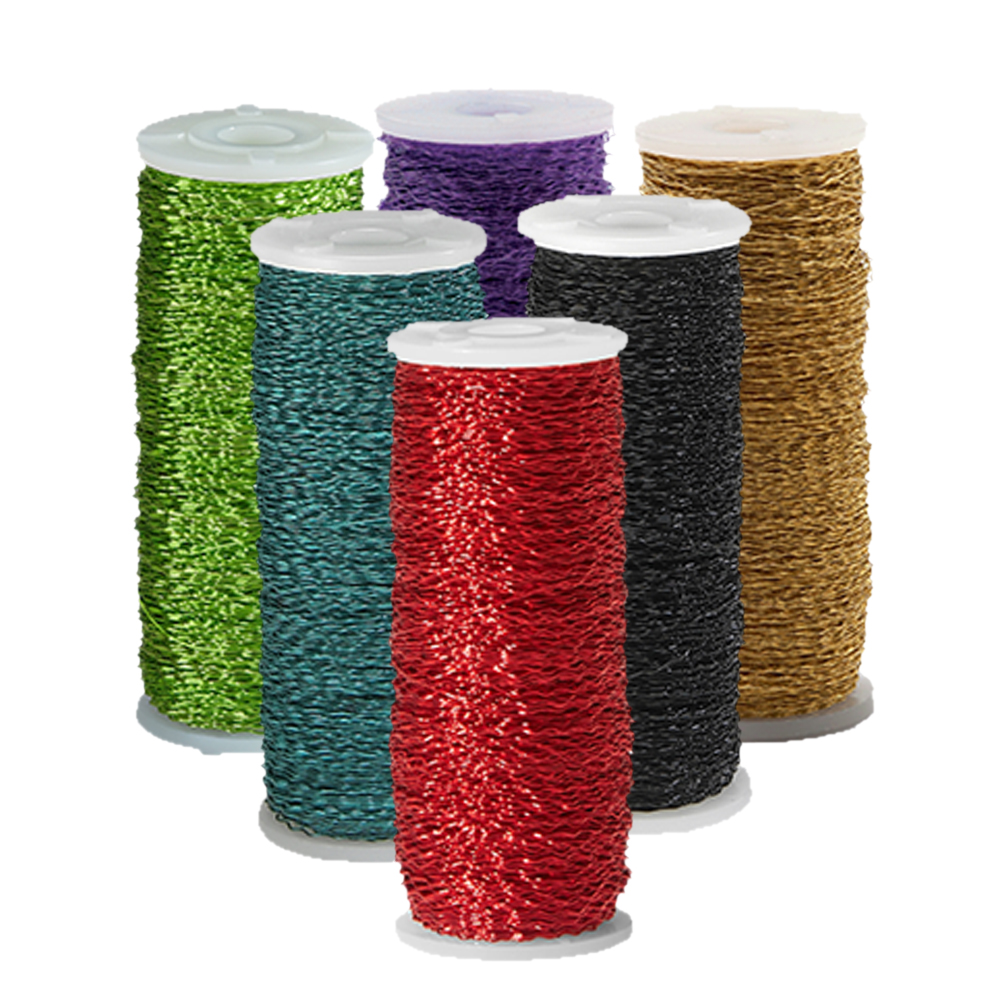 28-gauge crimped metallic wire. Adds delicate sparkle and shine to arrangements 459 Ft. per roll, 1-18 rolls per case.