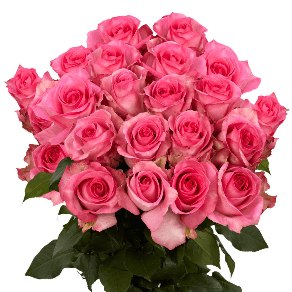 A deep pink color rose with a cup shaped bloom. A box contains 8 bunches of 25 roses each. Roses are 20"- 22" inches long. Your flowers and roses are shipped absolutely fresh, direct from the greenhouses to you via FedEx. Globalrose sells wholesale flowers and wholesale roses at prices that are usually lower than most local wholesalers. All our flowers and roses are cut specially for you, your loved one or special event (wedding, party, fundraising event, birthday or holiday), 3 days before they are delivered to your door. Color tones for all flowers and roses may vary due to the computer monitor and/or Mother Nature.