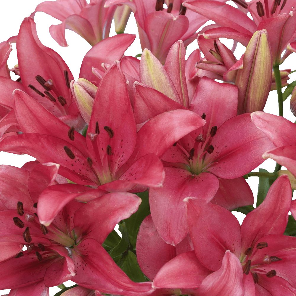We are proud to offer our online sale of hot pink Asiatic Lilies. Order now to receive this sale price and surprise your special person with these magnificent buds.