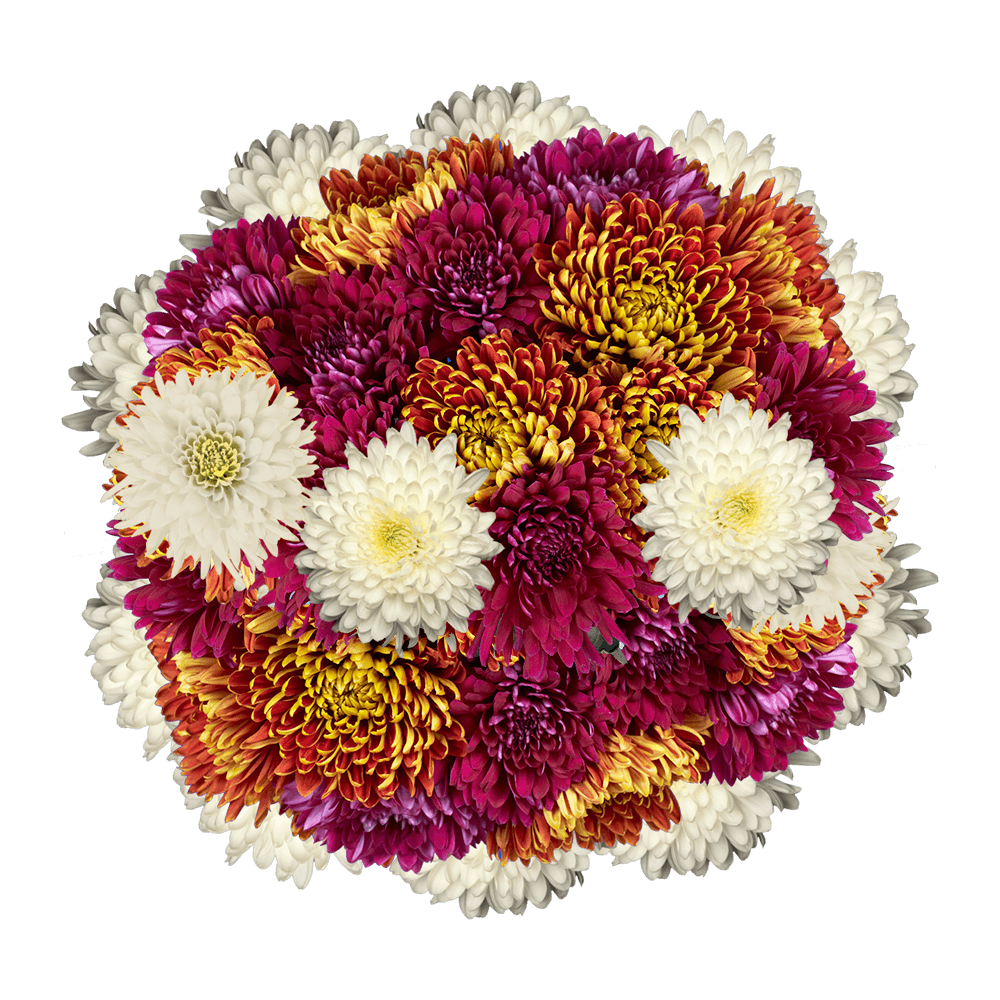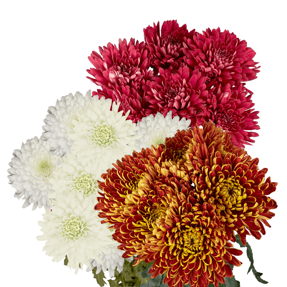 Beautiful, circular-shaped flowerheads with lots of thin, elongated petals in a single bloom sitting atop a dark green stem. Our assorted colors disbud pom poms include ones in bronze, yellow, orange, pink, red, lavender, purple, cream, white, and bi-colored ones as well. Should you require them in a specific array of colors, please do not hesitate to contact us directly.