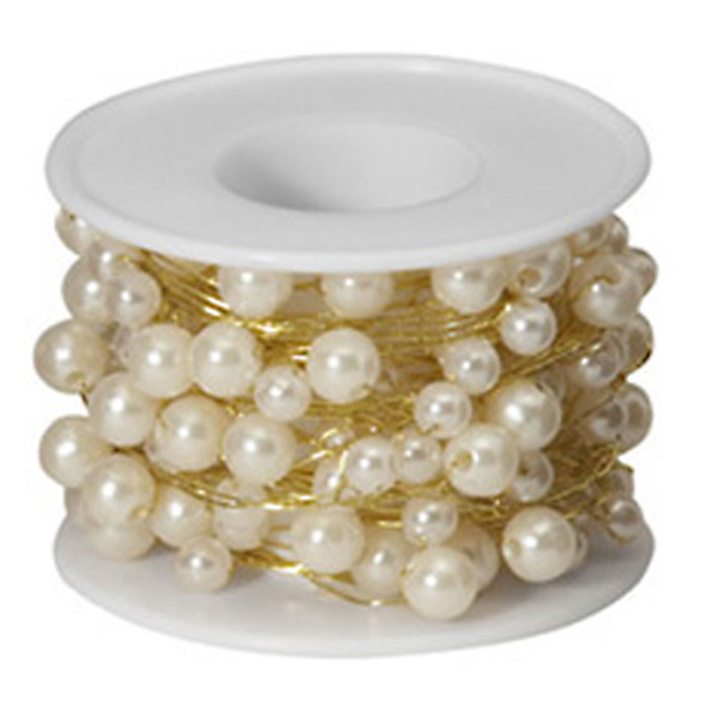 Metallic wire pre-strung securely with 1/3" and ¼" diameter pearl beads. Add romantic texture or bold pops of color to arrangements.