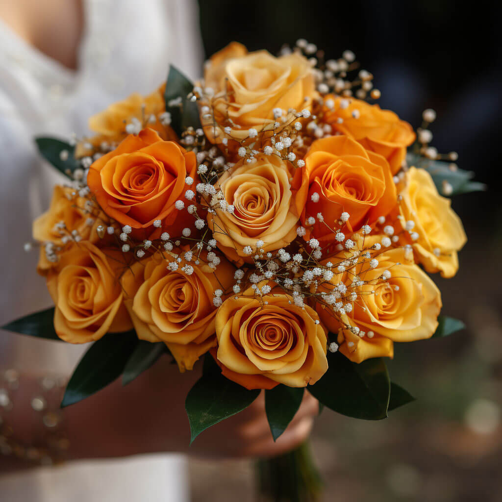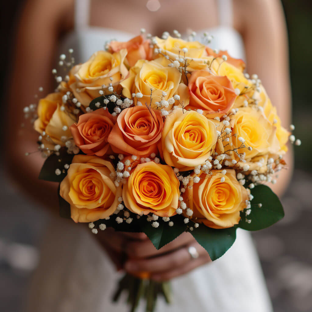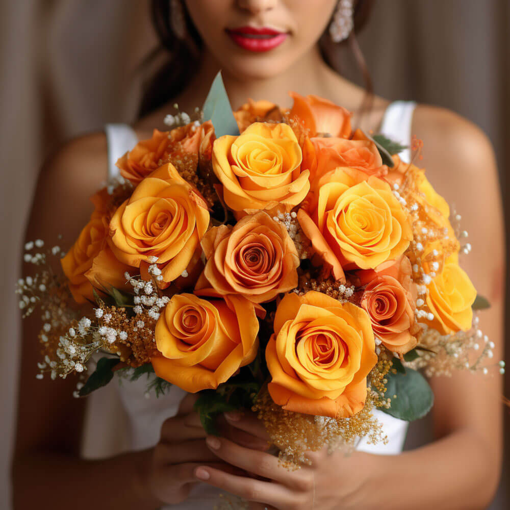 Our gorgeous sunkissed Yellow and Orange Classic Rose Bridesmaid Bouquets are phenomenal! You and your guest will love how your Bridesmaids look as they make their way down the aisle carrying these sumptuous flowers!