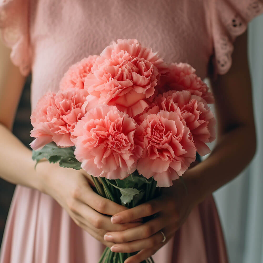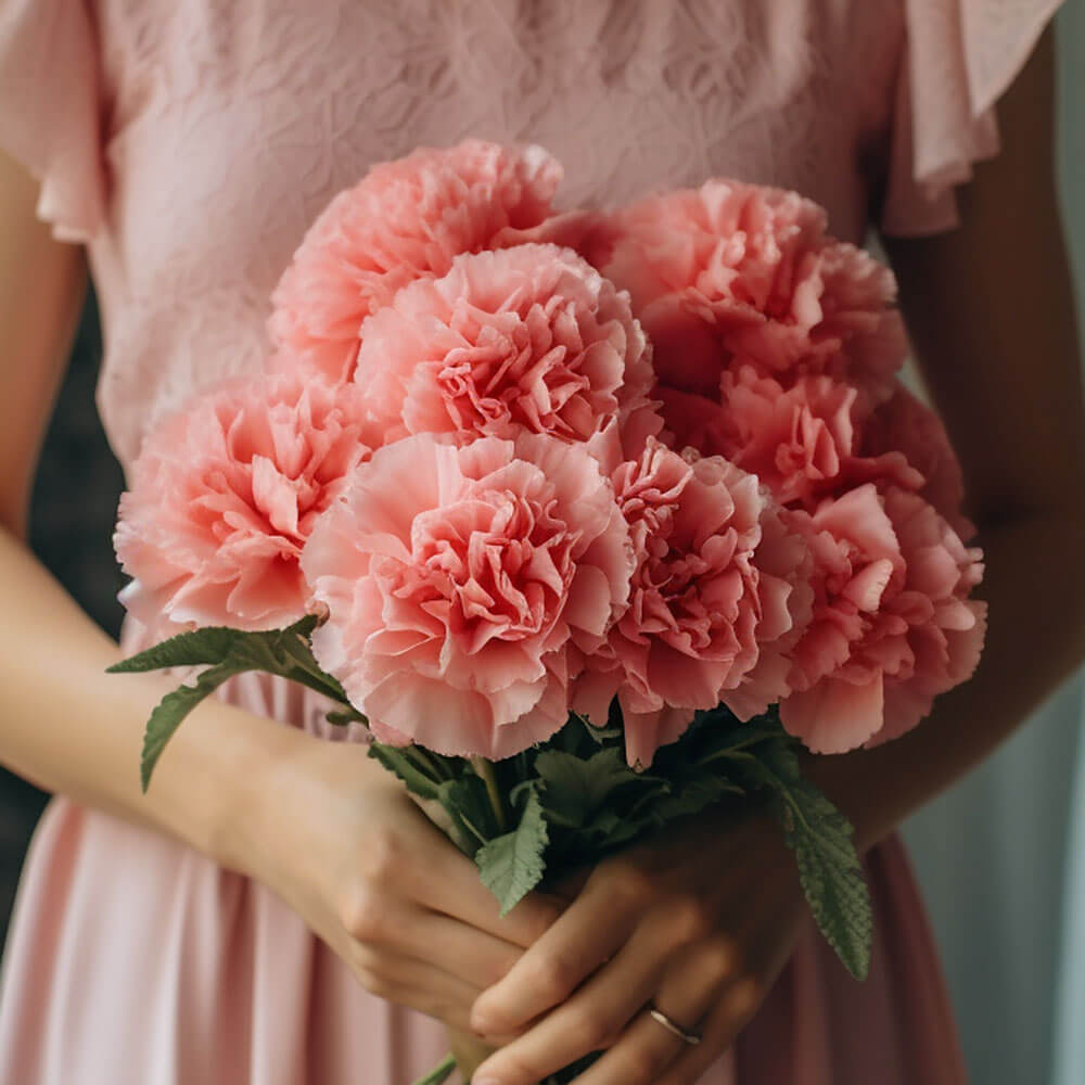 Order beautiful pink bridesmaids carnation bouquets for your dream team of ladies and they will surely thank you for it. Our pink carnations will looks absolutely lush to accompany your bridesmaids' flowy dresses as well as your wedding theme from vintage dinners to spring morning ceremonies. Since these are long-lasting hardy flowers, they are perfect for outdoor occasions such as garden venues or even beach ceremonies.