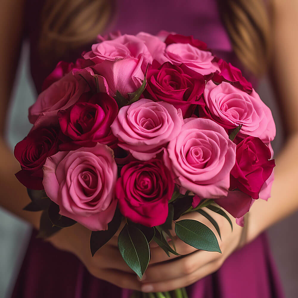 Buy dark pink and light pink rose bridesmaids bouquets from us and receive fresh handcrafted pieces at a much lower cost than anywhere else.