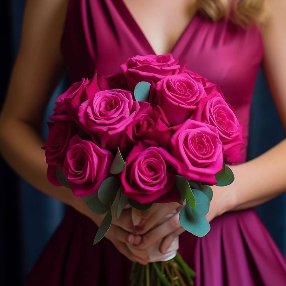 Your girl squad will look absolutely beautiful holding these roses that will not only give off an incredibly romantic vibe but a bold pop of color too. Our dark pink rose bridesmaids bouquets are offered a discount prices so that you can shop online with ease, wihtout worrying about delivery costs too. Save on your floral budget when you get wedding bouquets directly from the growers.
