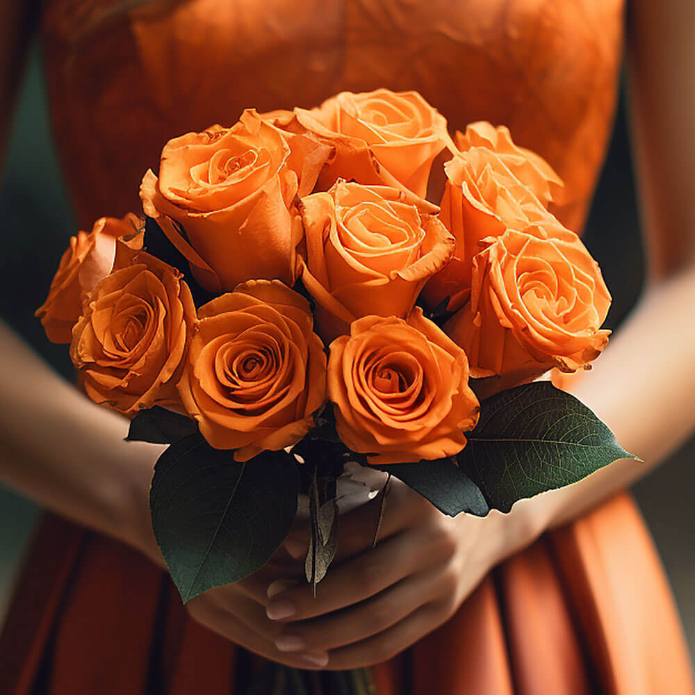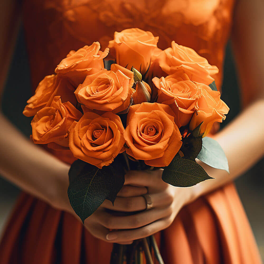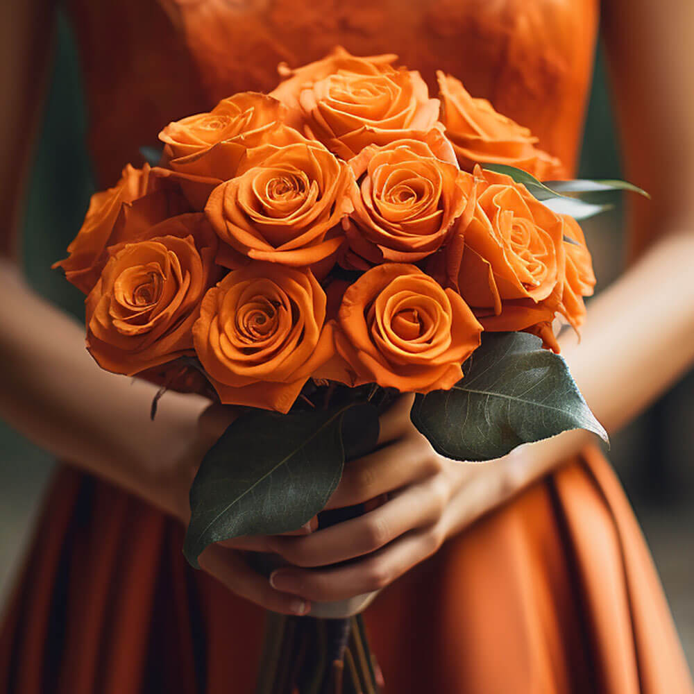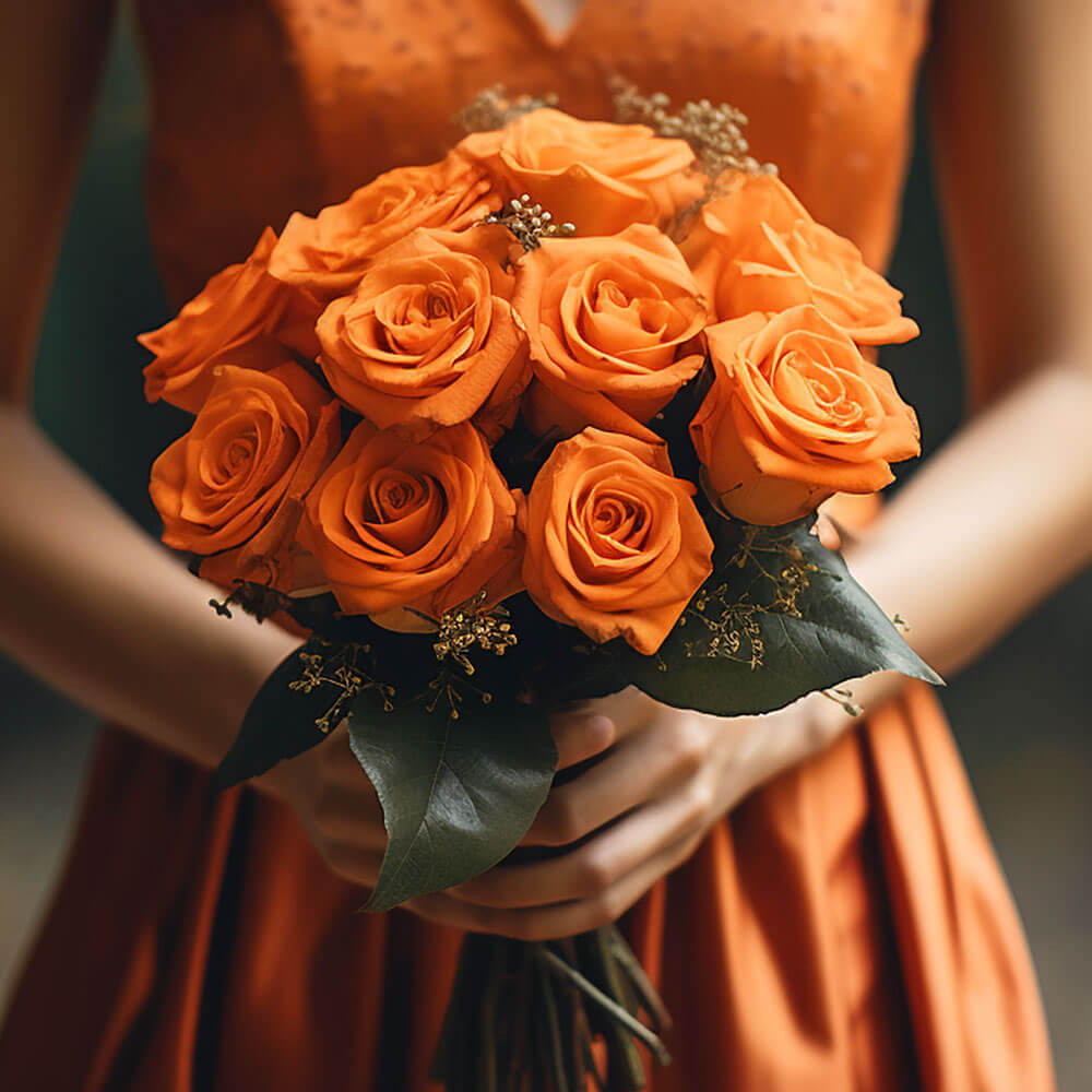 Shop for fresh orange romantic rose bridesmaids bouquets online for that chic modern reception, bohemian outdoor ceremony or even a white winter celebration.