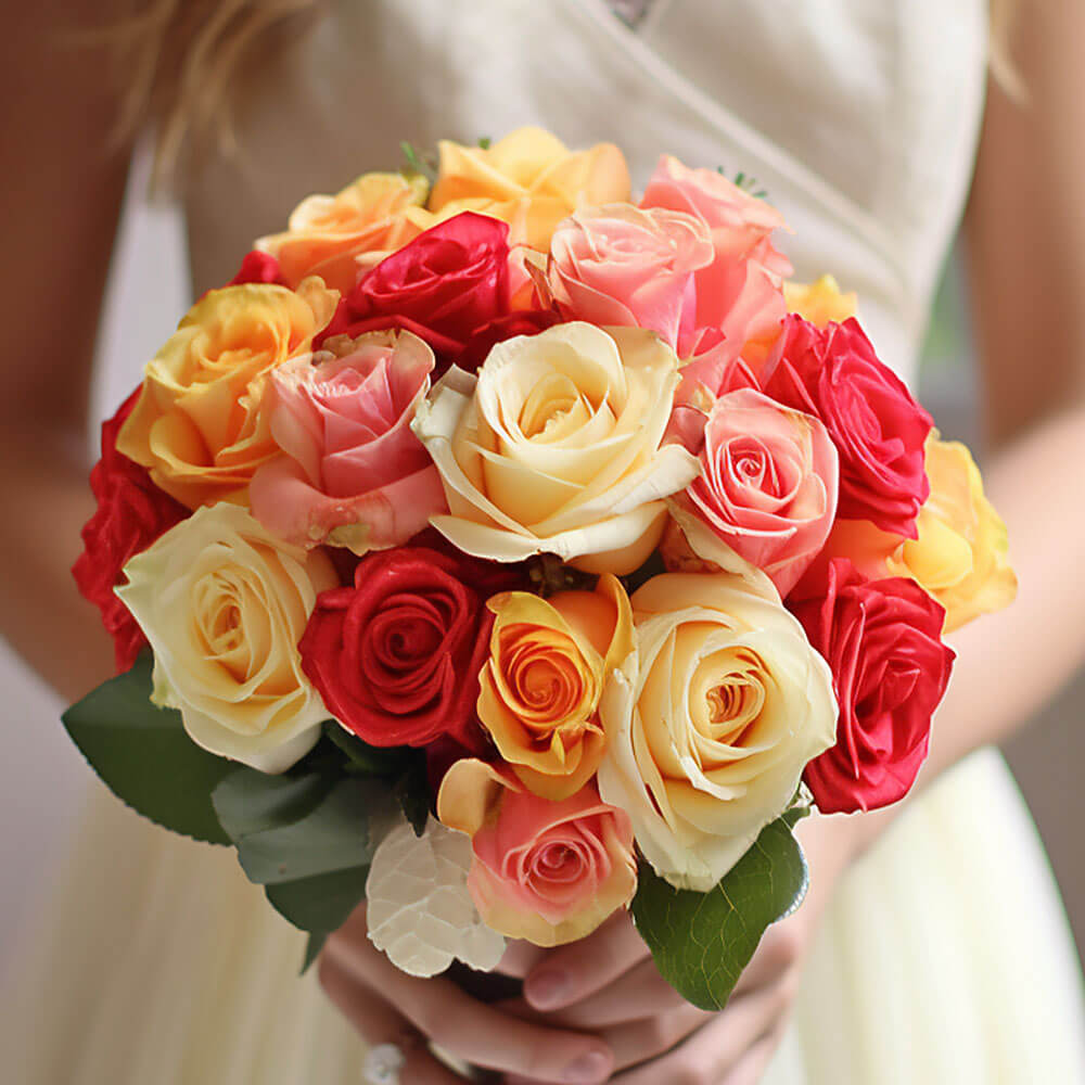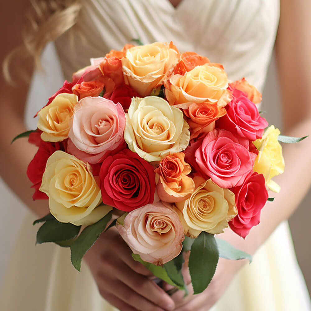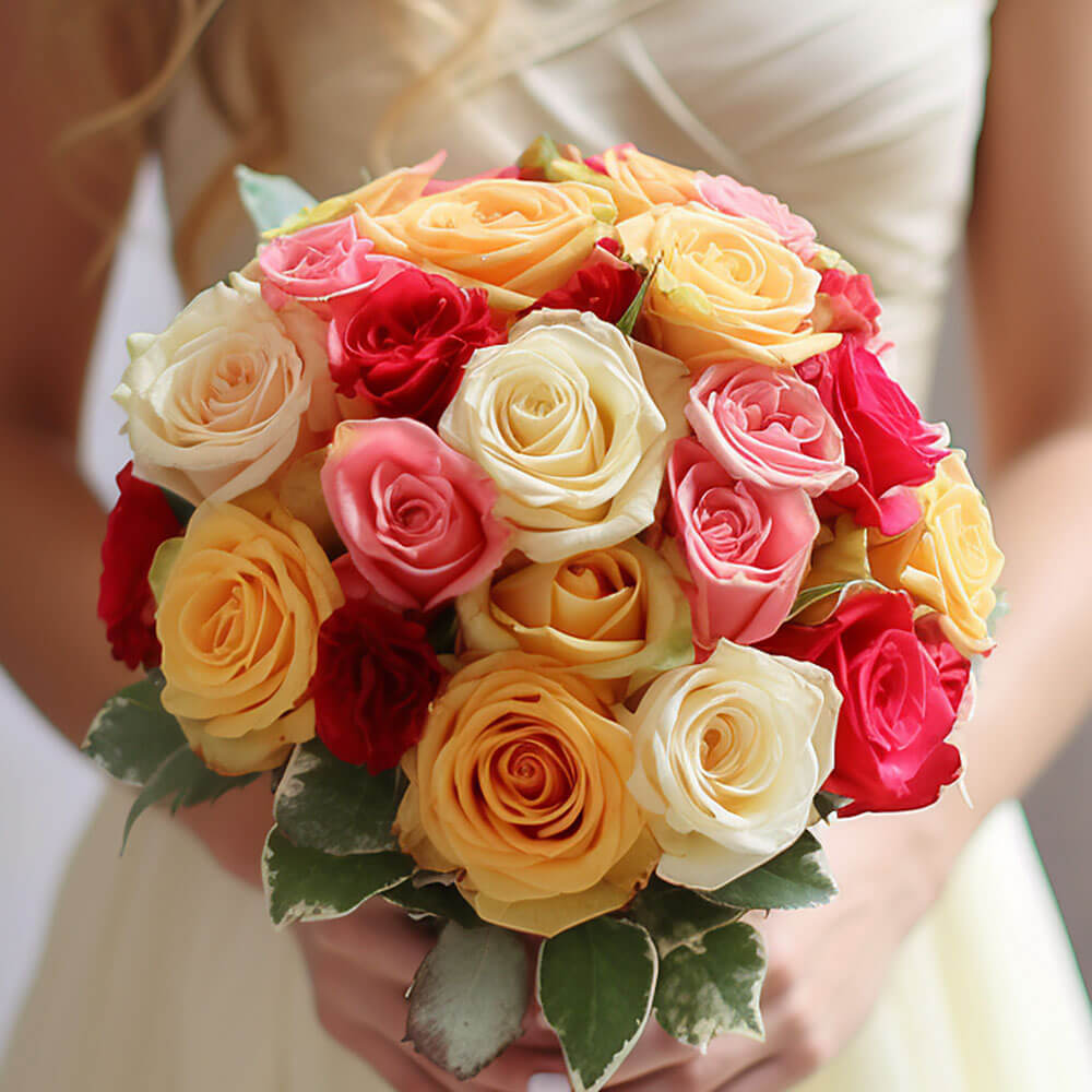 Get assorted roses in a variety of gorgeous colors as your bridesmaids bouquets to turn your wedding day into a vision of beauty.