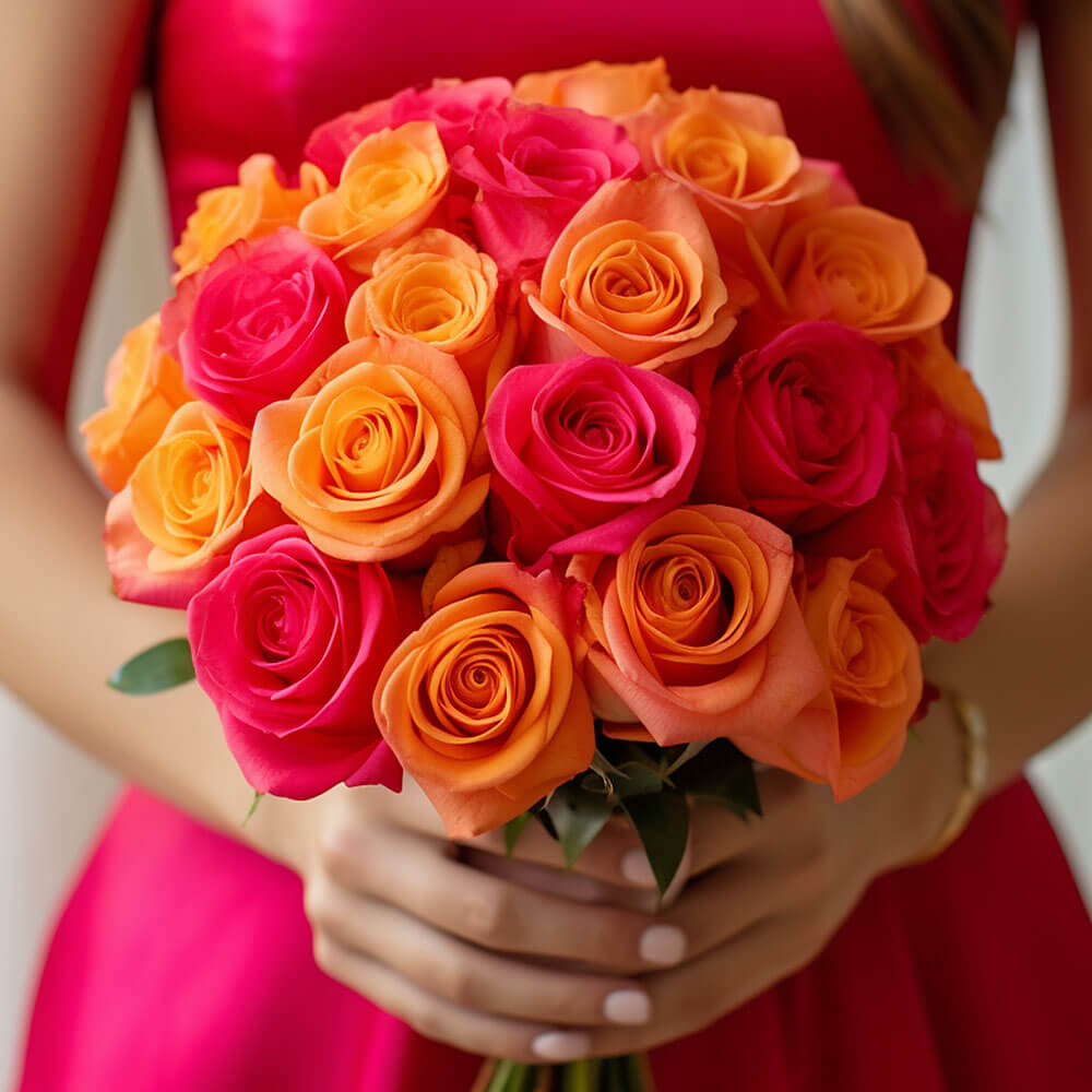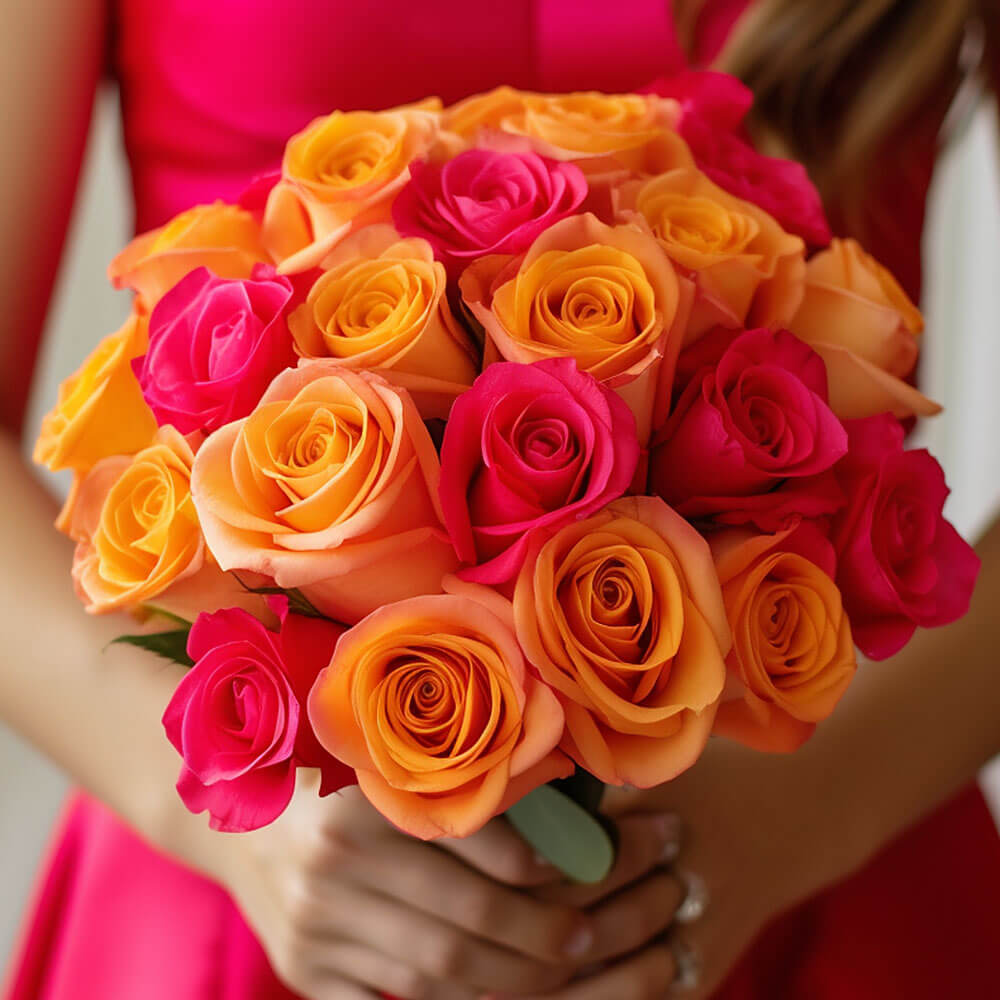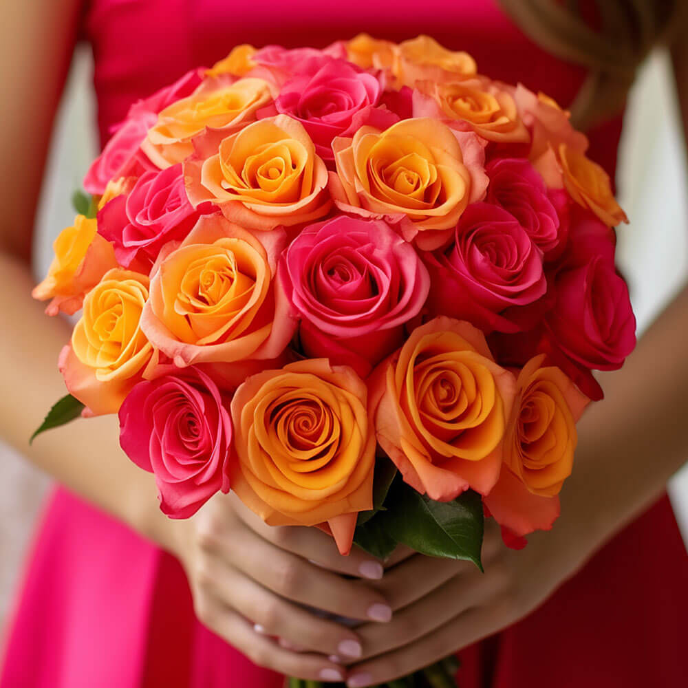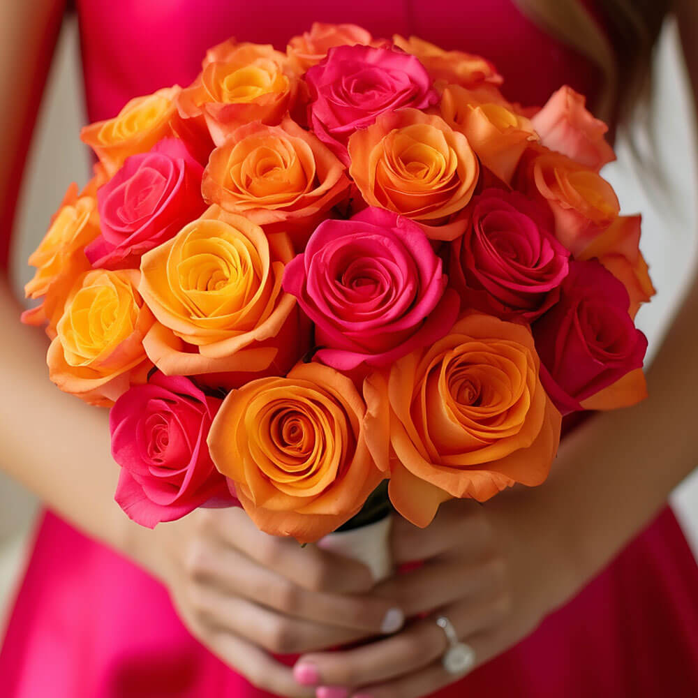 Whether your dark pink & orange rose bridesmaid bouquets are ordered as a set of 3 or even 6, you can be sure that every single one will be prepared fresh. Thanks to our wholesale prices, you can skip store-bought flowers and buy only the best roses for this once-in-a-lifetime event.