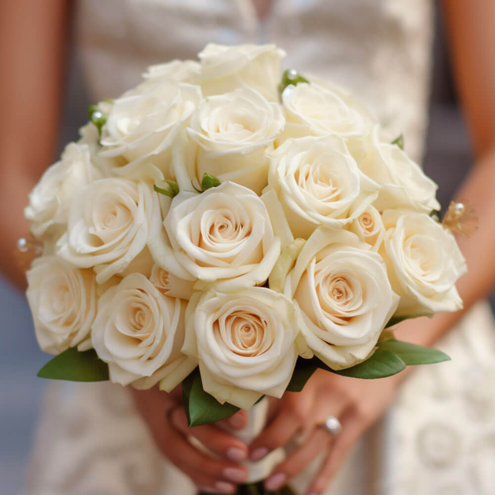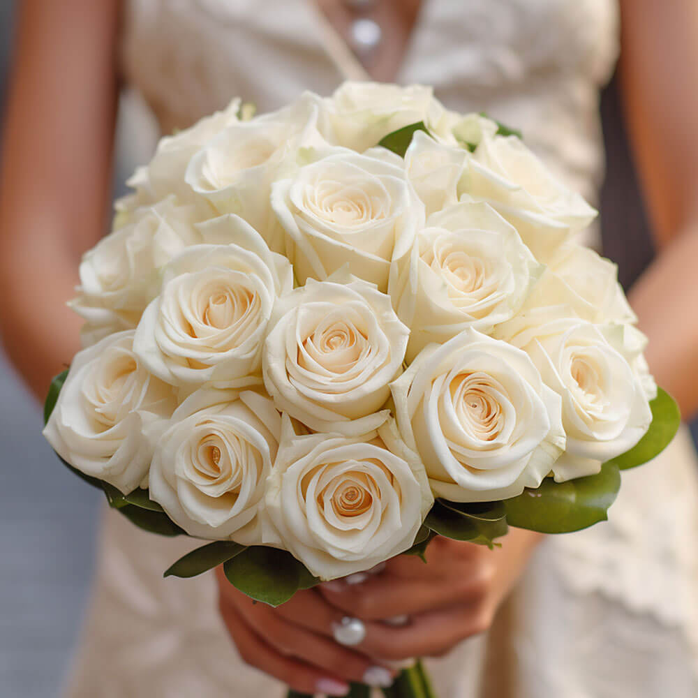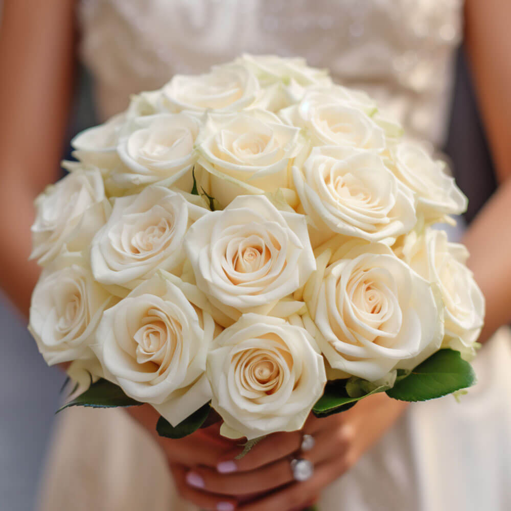 Get fresh ivory rose bridesmaid bouquets online if you're looking for classic wedding blooms. If you want your best girls to hold something floral-inspired but you are not sold on the idea of a traditional round bouquet, you could even turn these stems into flower clutches with wire hoops or even wicker baskets. It's really that easy to get inspired once you get your hands on these fresh ivory roses.