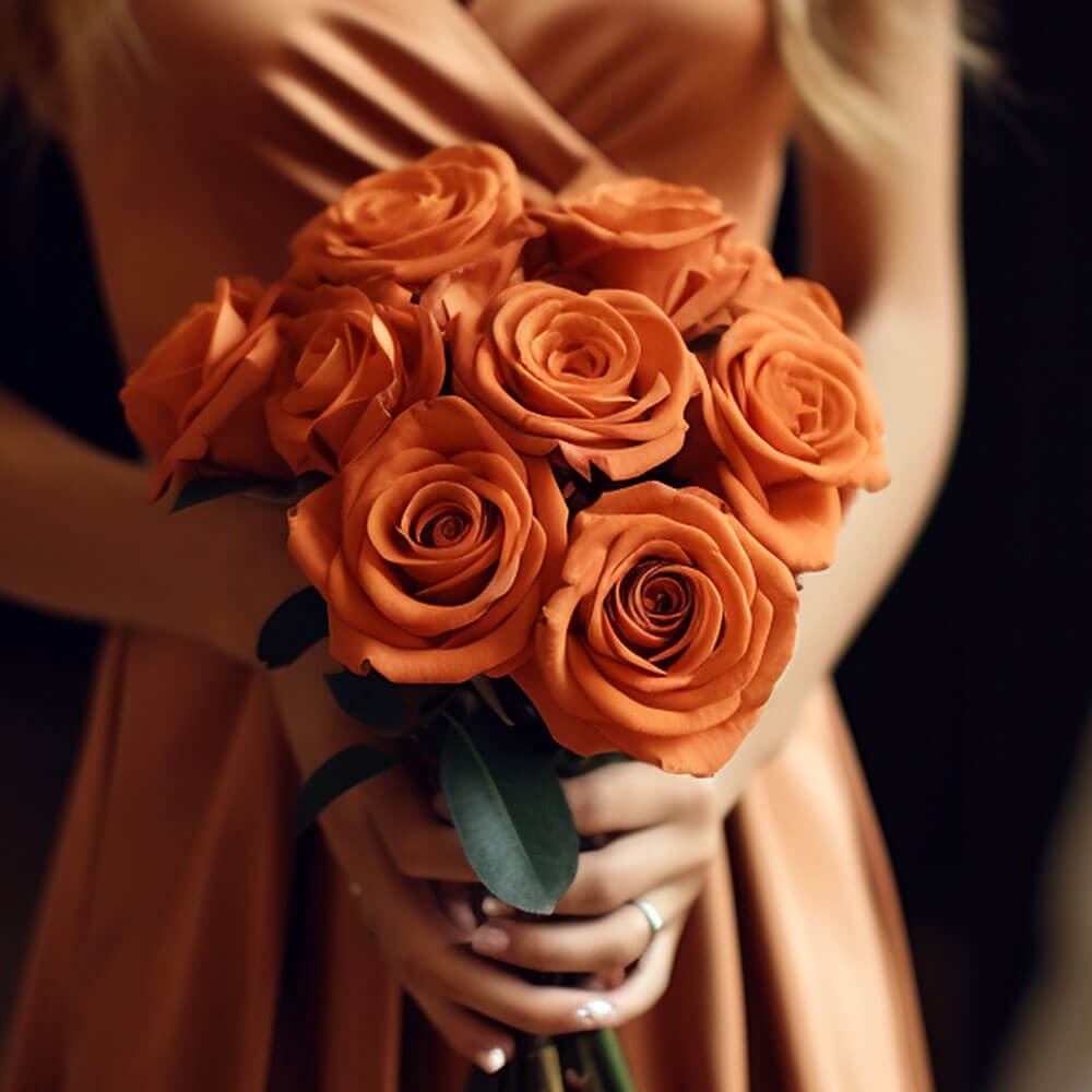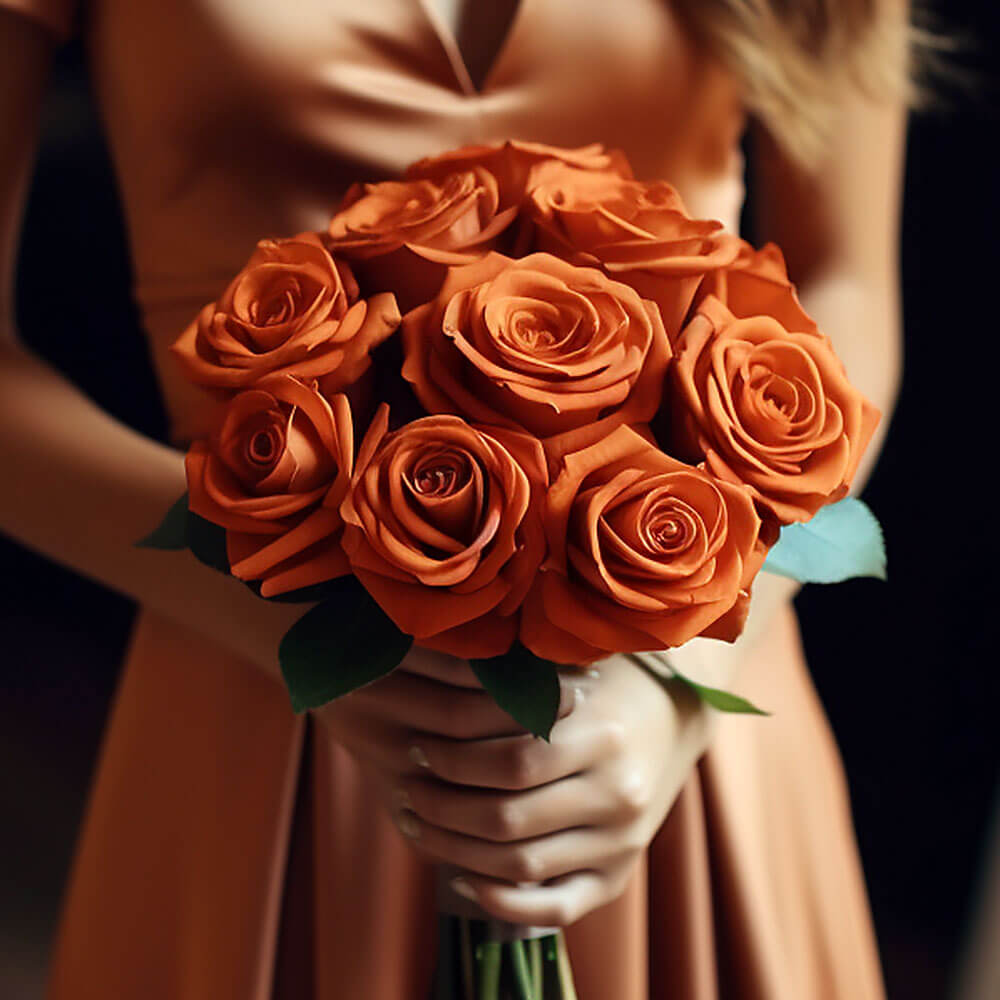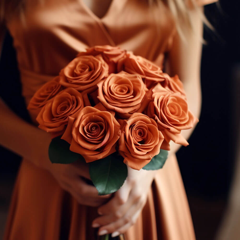 Elevate your wedding day with the unmatched elegance of our Terracotta Roses Bridesmaids Bouquets. Envision your entourage gliding down the aisle, each bridesmaid holding a bouquet that embodies the perfect harmony of terracotta and lush green hues. These roses, freshly nurtured from vibrant soils, capture the beauty of a setting sun over a rich landscape, making them an ideal choice for weaving romance into every moment of your special day.Each bouquet, containing 32 meticulously arranged stems, speaks volumes of love and passion. Their unique terracotta color shades dance gracefully amidst the calming backdrop of greenery, serving as a magnificent tribute to authentic expressions of affection and friendship. Ideal for rustic-chic weddings, autumn celebrations, or any event that calls for a touch of natural elegance.With next-day delivery, these bouquets are conveniently available whenever you decide to take the vows of love. Imagine the delight and surprise when your maidens of honor receive their stunning arrangements, ready to complement their attire and the overall theme of your wedding.The essence of these bouquets extends beyond visual allure. They carry with them feelings of warmth, sophistication, and a timeless charm that's sure to linger in the memories of everyone present. Plus, with free shipping, bringing these masterpieces to life couldn't be easier. Explore the vibrant charm of our Terracotta Roses and let the symphony of colors transform your wedding vision into reality. Let your bridesmaids carry more than flowers; let them hold a piece of your heart as they walk with you in celebration of love and unity.