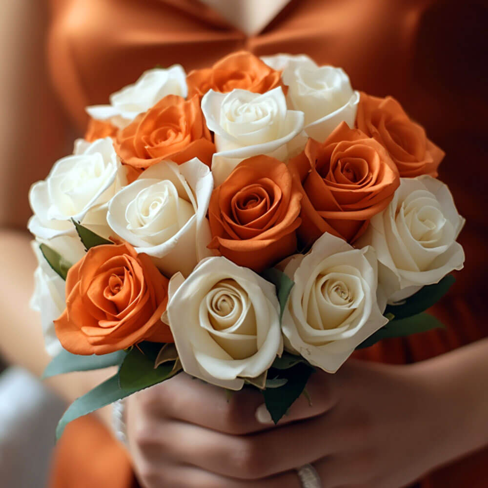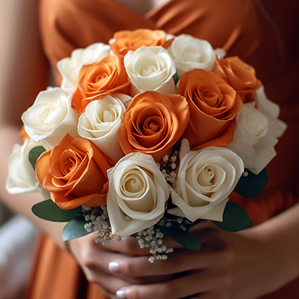 Get fresh terracotta and white royal rose bridesmaid bouquets if you're looking for classic wedding flowers but with a little modern spin. It's really that easy to get inspired for your wedding decorations once you get your hands on these fresh terracota colored and white roses. If you want your best girls to hold something floral-inspired but you are not sold on the idea of a traditional round bouquet, you could even turn these stems into flower clutches with wire hoops or even wicker baskets. Stems are prepared at 16 to 18 inches long which gives you much more room for some creative floral projects.