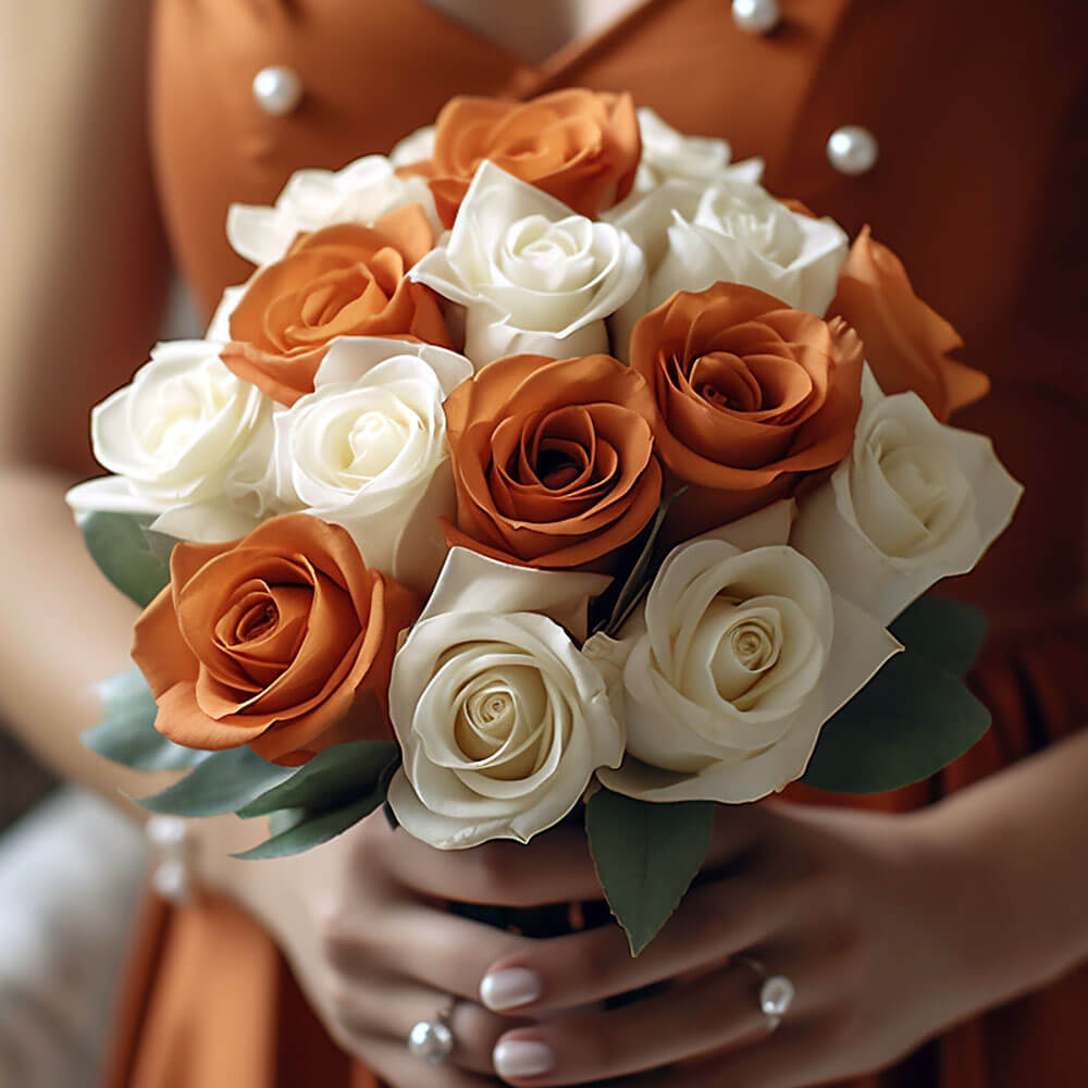 Get absolutely beautiful and fresh terracotta and white royal roses for your bridesmaids because we know they'll love you for it.