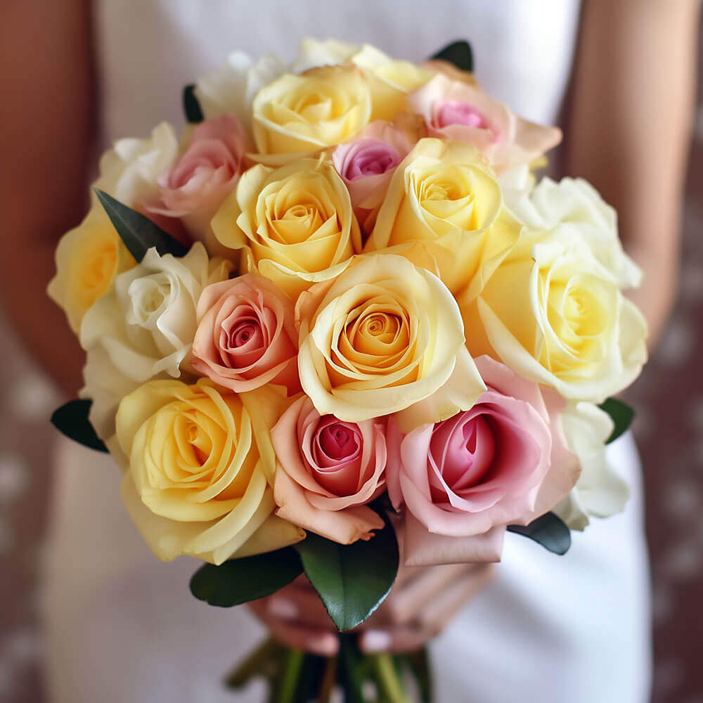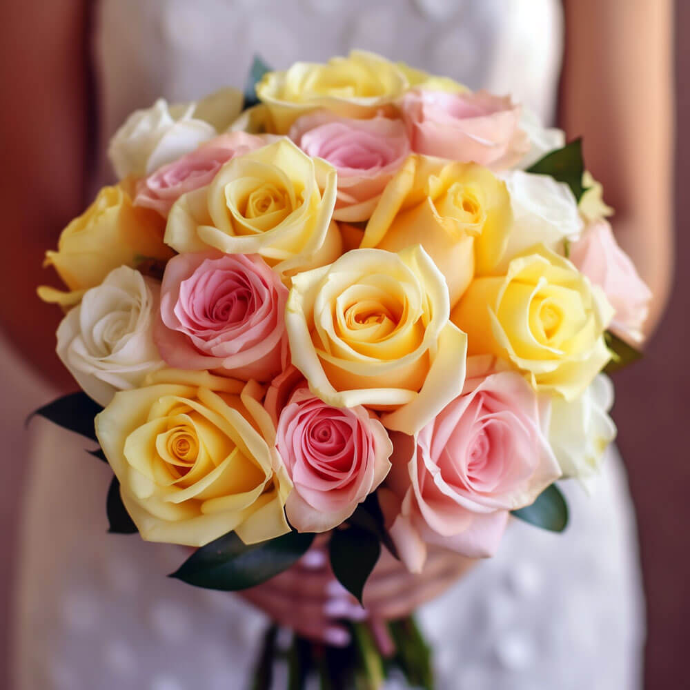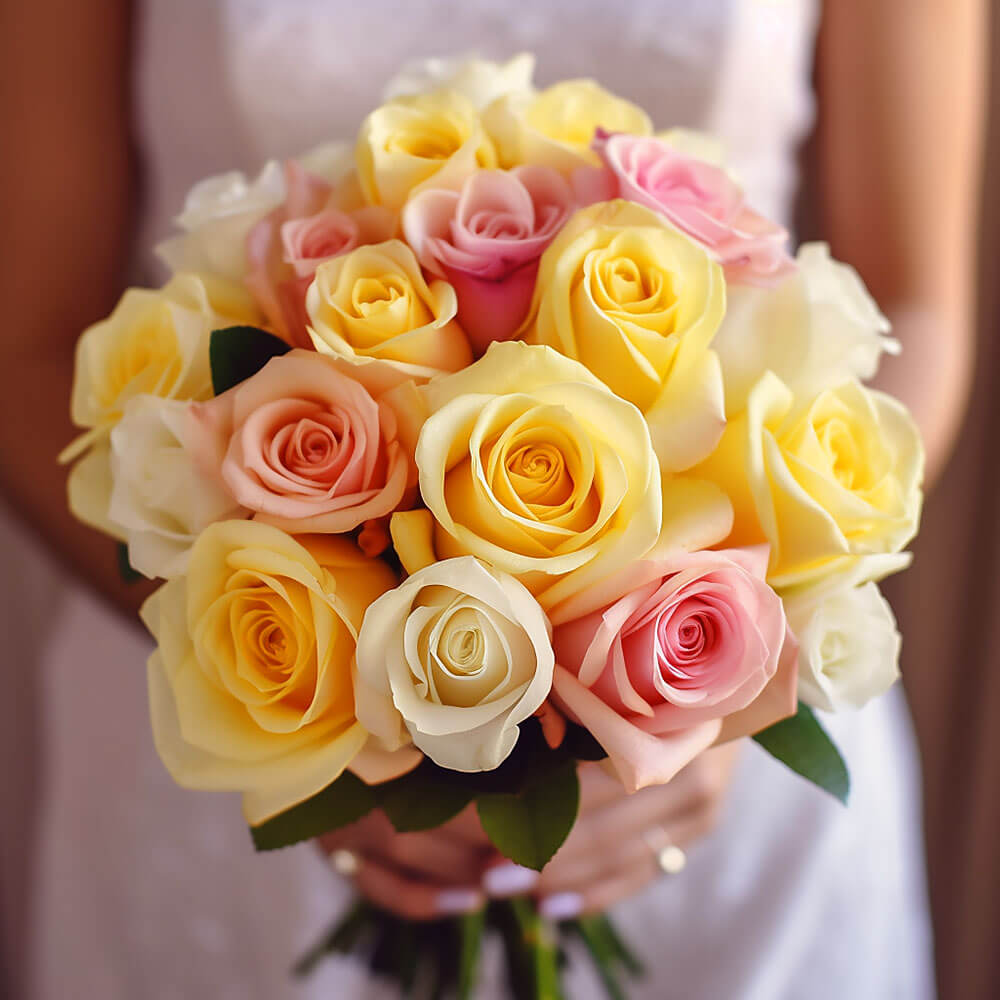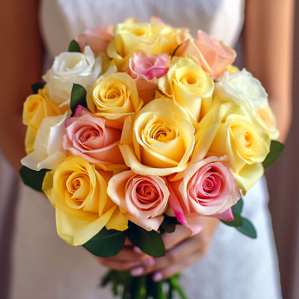 Get ready to be amazed by the beauty of our premium yellow, light pink & white royal rose bridesmaid bouquets for your best girlfriends.