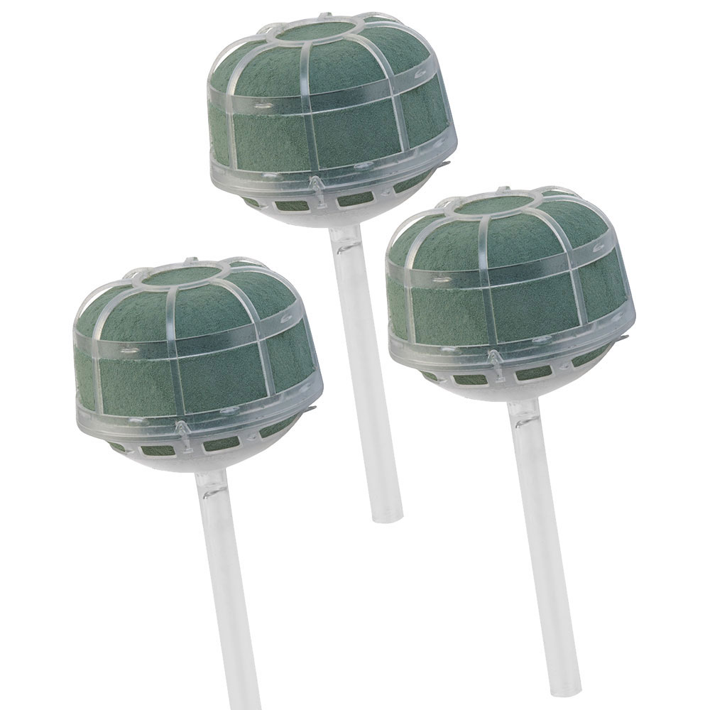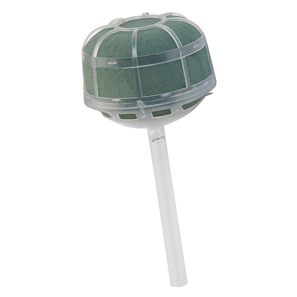 Cage filled with OASIS® Floral Foam Maxlife to provide a continuous water source for bouquets that live up to 50% longer than in any other design mechanic. Rigid plastic construction supports the weight of flowers and allows a variety of bouquet designs. Rounded cage optimizes depth and dimension to bouquets. Features a waterproof, shatterproof plastic handle in straight and slant handle styles.