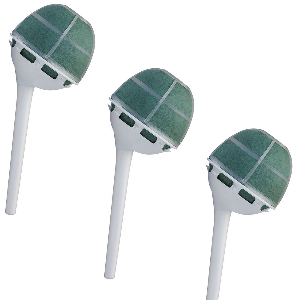 Cage filled with OASIS® Floral Foam Maxlife to provide a continuous water source for bouquets that live up to 50% longer than in any other design mechanic. Rigid plastic construction supports the weight of flowers and allows a variety of bouquet designs. Rounded cage optimizes depth and dimension to bouquets. Features a waterproof, shatterproof plastic handle.