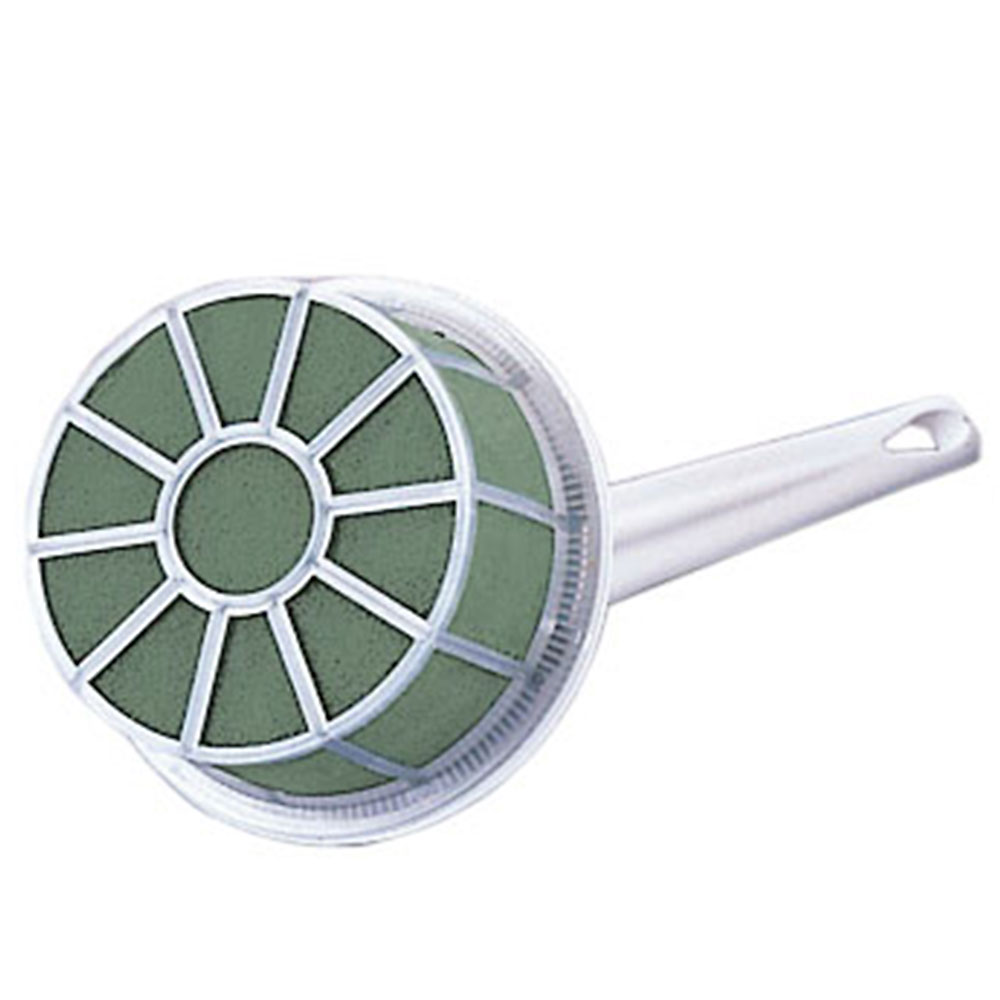 Sturdy, reinforced handle filled with OASIS® Floral Foam Maxlife. Teardrop opening on handle is ideal for starting and securing a ribbon wrap or attaching a streamer. Design windows on the underside for easy finishing with foliage.