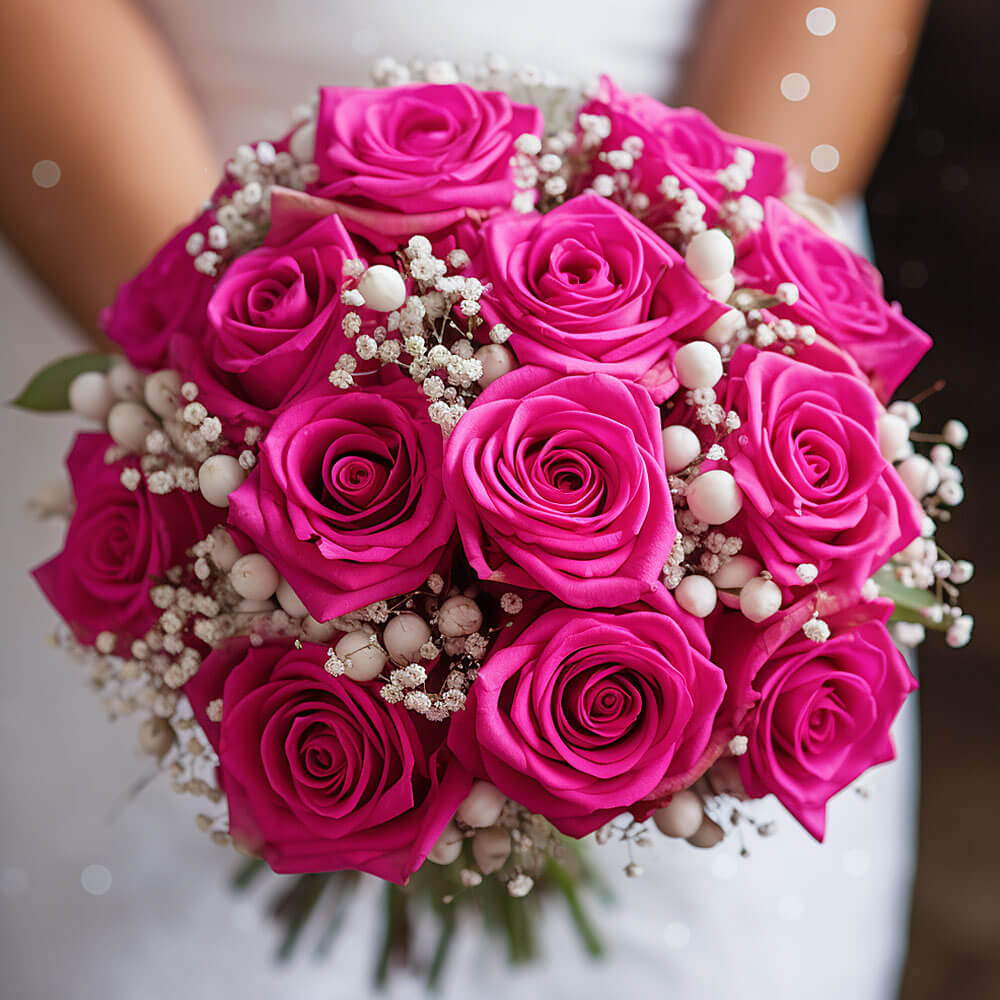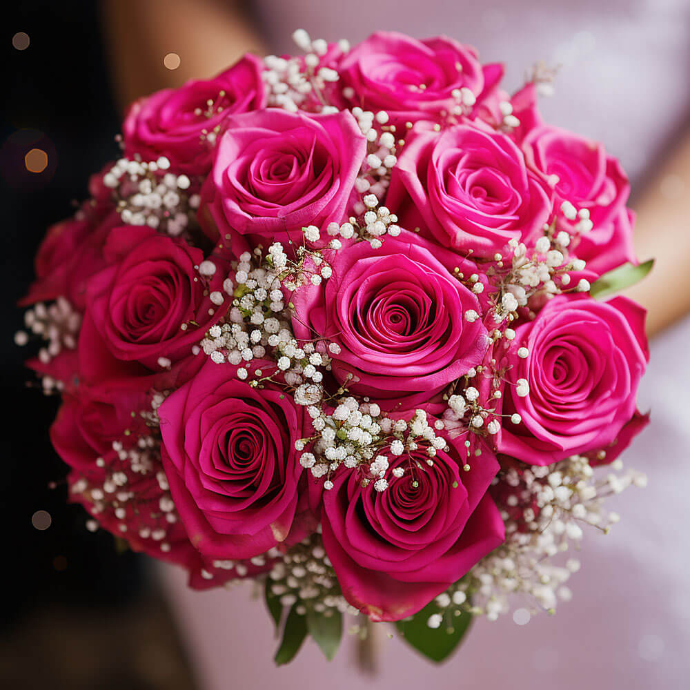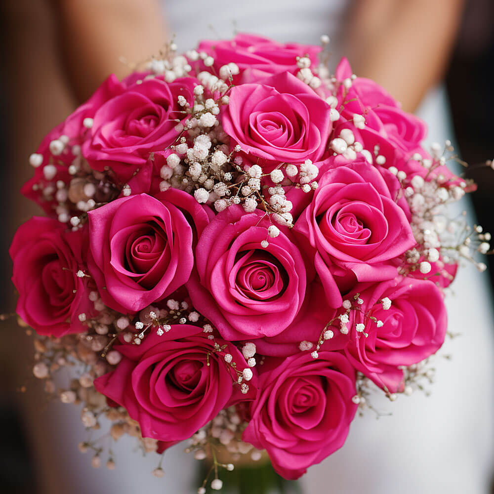 Finding the ideal type of bouquet for your bridal bouquet is a small yet sometimes a daunting task. Look no further because we have the solution for all your worries. When torn between several options, brides can opt to pick roses as their final selection because it is as evergreen as it can get and will never be a flower that goes wrong in any setting. These beautiful classic bridesmaids rose bouquets with dark pink roses and baby’s breath symbolize gratitude, appreciation and recognition, the best way to let your girls know that you truly see them for all that they are while the baby’s breath act as a charming blanket protecting the roses.