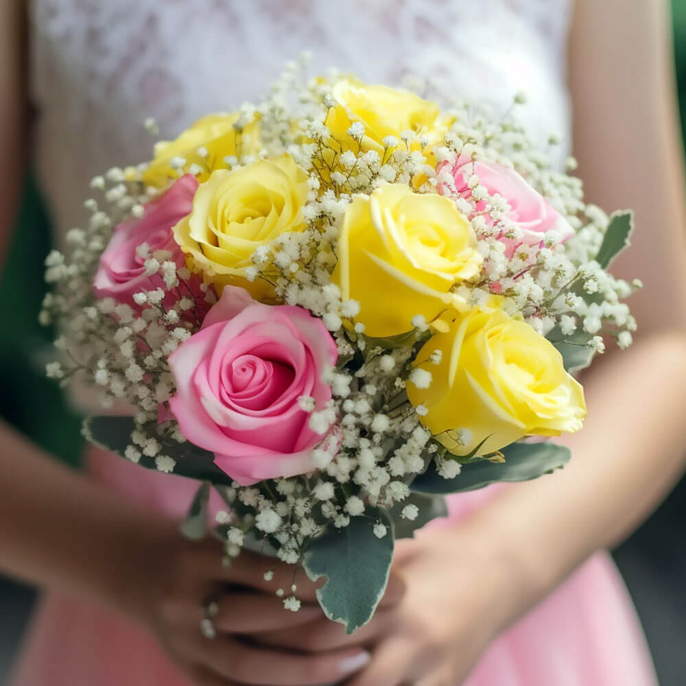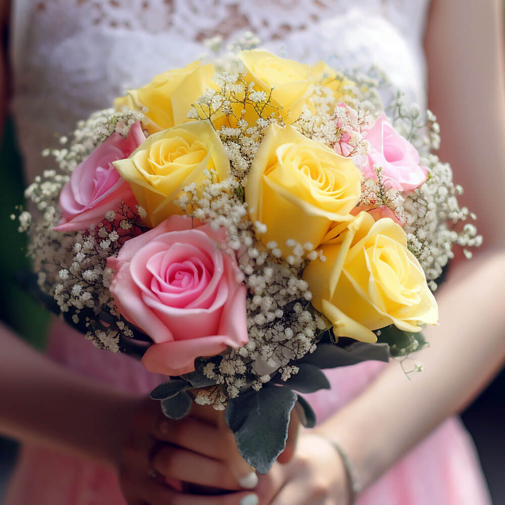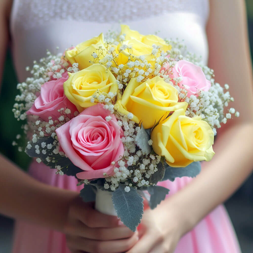The best part of this deal is that when you buy our classic bridesmaids rose bouquets with yellow and pink roses, not only do you get plush petals that demand attention, you also get a free delivery with it! You can mark off another item on your wedding to-do list when you order through us, as we can guarantee you fresh and high quality flowers all year round.