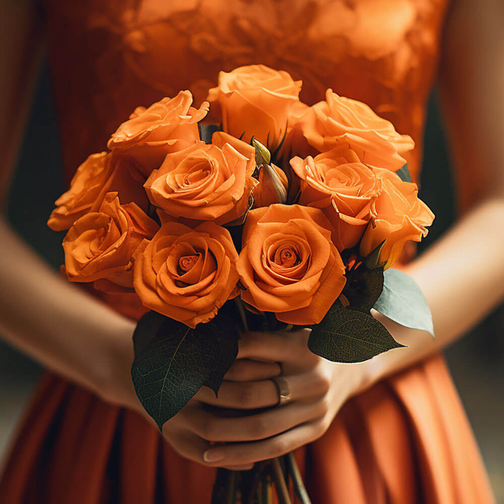 What is your picture of the perfect wedding? In a garden overlooking, a lake with majestic swans swimming through, and much greenery and the smell of flowers. When you imagine a wedding they play on all our senses, what we see, what we feel, what we taste, what we hear, and to a significant point, what we smell. If you are unable to have the outdoor wedding of your dreams, you could always recreate the experience by replicating these experiences. What a better way to do that than to have flowers at your wedding, from the bridal bouquet to the centerpieces, even the beautiful bridesmaids rose bouquets with orange roses. The scent of roses is so appealing that your guests and the color orange brightens up any occasion, you will be able to transport your guests to the wedding of your dreams, as you tie the knot and move into marital bliss. With free shipping included in your order, get the best out of what you pay for with this floral arrangement.