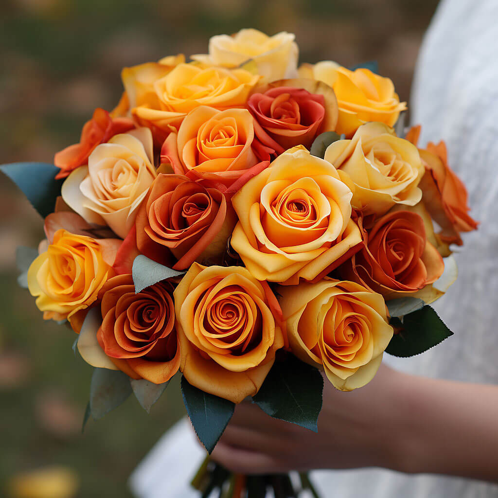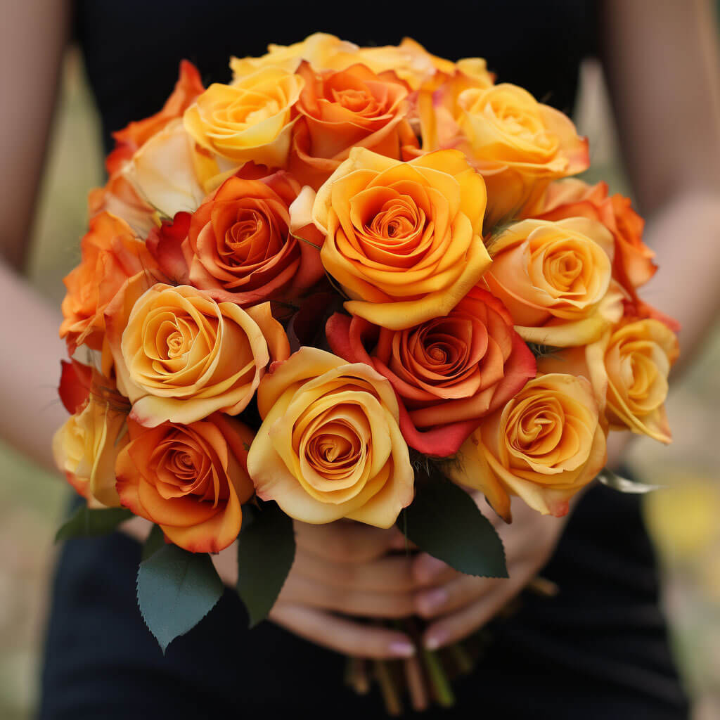 Summer time is everyone’s favorite. The sun, the sea, the sand. Marry the idea of a summer wedding and our fresh romantic bridesmaids rose bouquets with yellow and orange roses and you'll have a recipe for success. While yellow signifies warmth and affection, the orange embodies gratitude and enthusiasm. These radiant warm colors would make a mark on its own by being in the arms of all your bridesmaids, making your significant day even more memorable.
