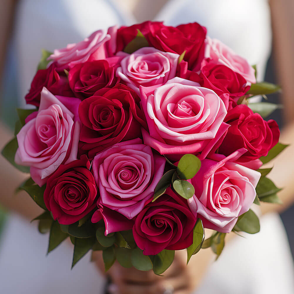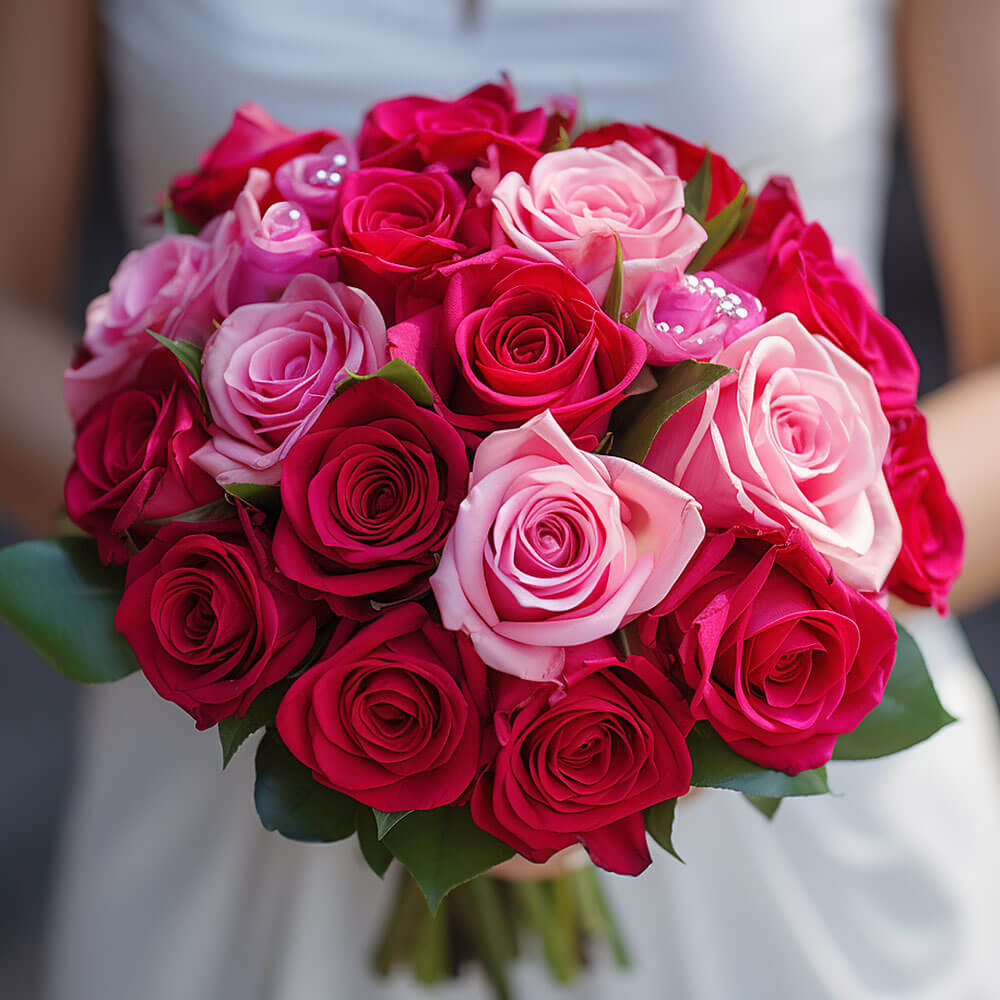 When you and your partner say I do everything around you just seems to melt away, and the two of you are the center of the universe. It’s beautiful to see as every eye in the general vicinity is trained on what's next, the first kiss as a married couple. This ambiance and magical feelings can only be achieved when everything is planned and executed correctly, one element out of place and the magic is gone. With this selection of beautiful royal bridesmaids rose bouquets with light pink and red roses, you can be rest assured the floral element to your wedding will be in good hands. The floral scent that roses imbue romanticizes the occasion while the pairing of light pink and red only adds more to it.