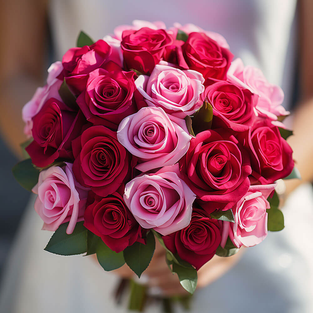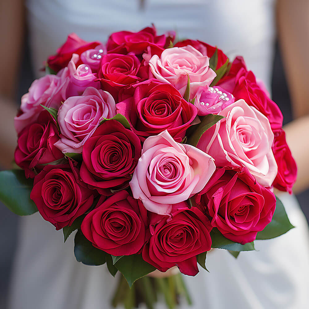 Red and pink. The two colors that are almost always a little girl’s favorite color when growing up. There is no proper explanation as to why this happens. Perhaps it’s the amount of femininity and romance it naturally exudes. Make your day extra special and materialize your childhood vision when you buy this royal bridesmaid rose bouquet with light pink and red roses. Now with complimentary delivery this option for your bridal party will make a beautiful statement piece.