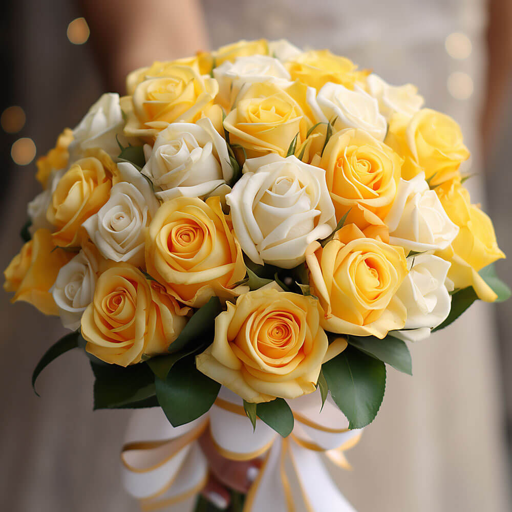 Bridesmaids bouquets are usually a slightly smaller version of a bride’s bouquet. However, this practice is slowly changing with brides now opting for a more casual look by having a completely different arrangement for their bridal party. With these gorgeous royal bridesmaids rose bouquets with yellow and white roses, you can have a little bit of spring for your special day. The exquisite combination of the white rose being a blooming romance flower and the yellow being a sign of friendship, makes this option a top contender for your ladies.