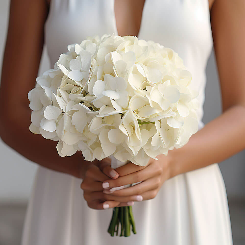 Turn heads at your wedding with our elegant Bridesmaids Bouquets of White Hydrangeas. Timelessly chic and effortlessly stunning, they tell a story of elegance and purity.