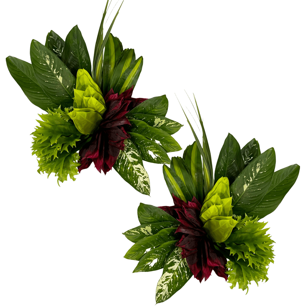 A wild and lush mix of exotic foliage, ideal for event decor and floral designs. Includes Masajeana, Philodendron Lemon, Dieffenbachia, Pandanus Lettuce Fern, and Cordyline.