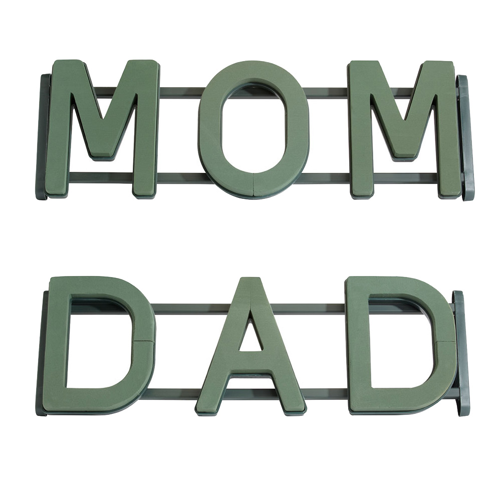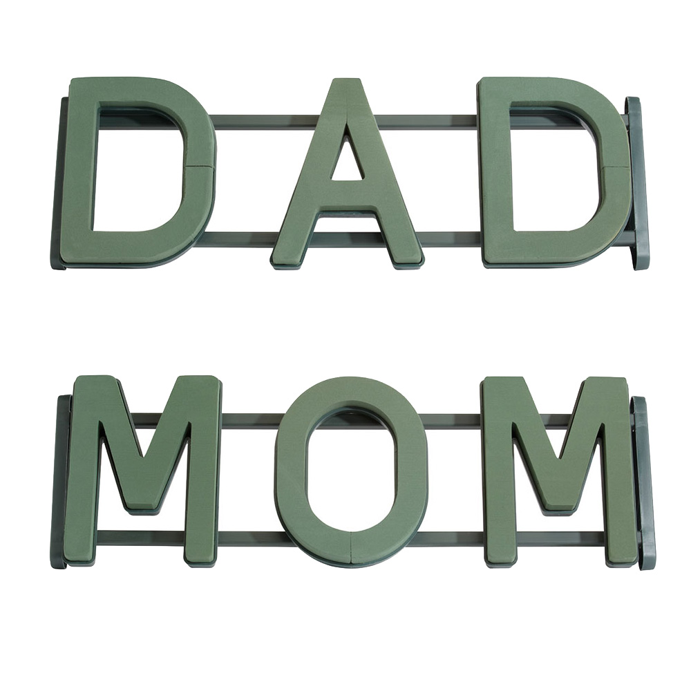 OASIS® Floral Foam Maxlife precut into letters. Sonically welded letters and super strong injection mold bars for secure hold. Easy-to-attach support stand for two optional set-ups. Use on caskets, graveside.