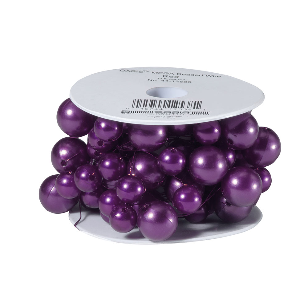 1/2" and 3/4" diameter beads pre-strung on a color coordinating wire. Make a big impact by adding a pop of color to bouquets and designs .