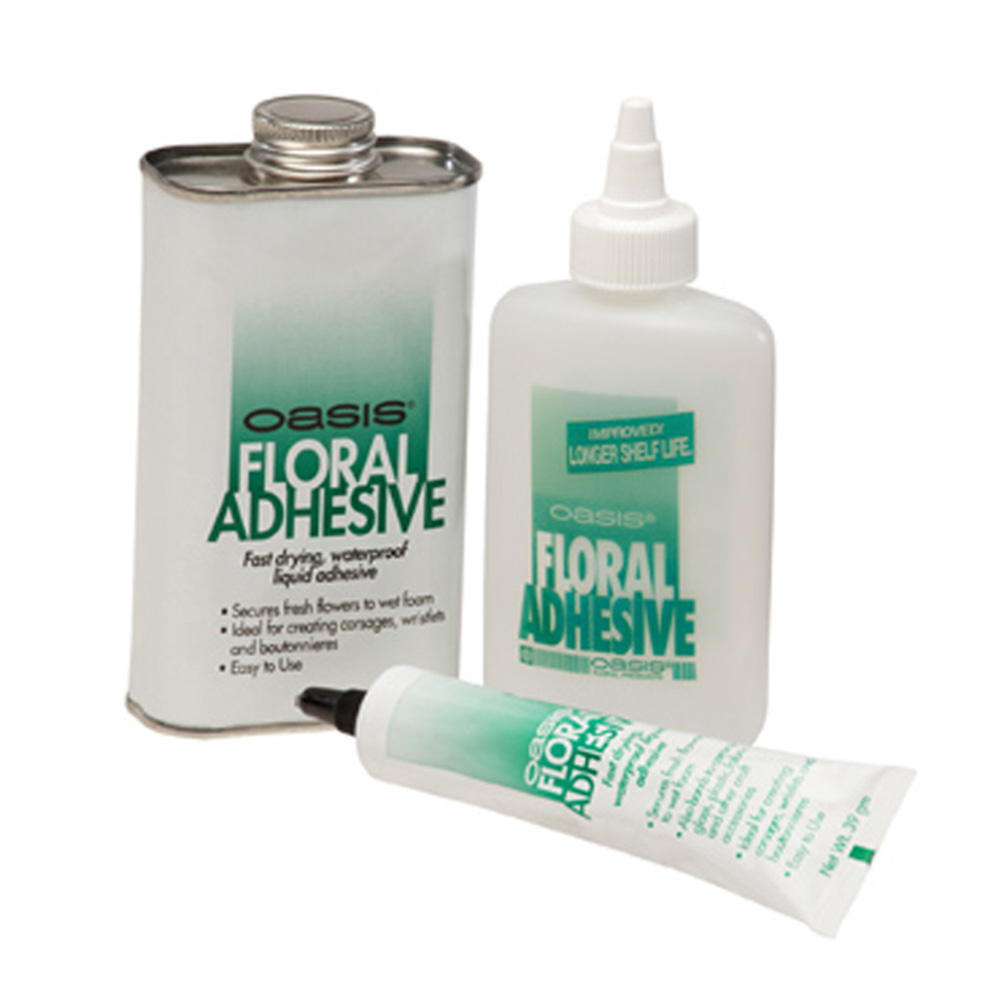 Fast-drying and waterproof liquid adhesive formulated for use with fresh flowers. Bonds quickly, safely and easily. Provides a time-saving alternative to wiring and taping, especially with corsages. Special formulation will not brown fresh flower petals. Holds in cold conditions .