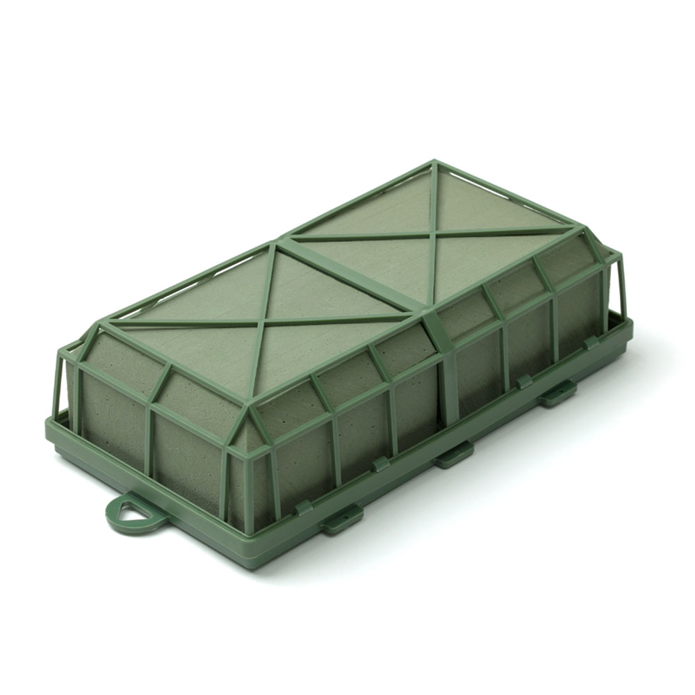 Extra large cage filled with Standard OASIS® Floral Foam Maxlife. Patented segmentation reduces drainage when placed upright (Patent no. 5,588,253). Triangle-shaped holes at both ends to secure cage to easels, posts and poles. Ideal for creating large floral sprays, elaborate pieces for hanging and more.