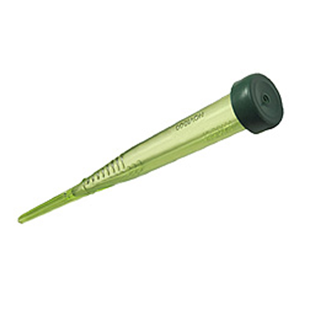 Light green polystyrene tube with green cap. Easy to insert and holds tight in dry foam and *STYROFOAM® brand plastic foam.