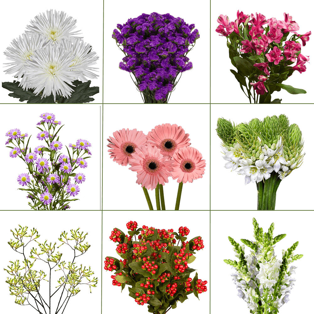 | Stems | Up to 200 Assorted Stems. You Choice the type of Flowers and Fillers |