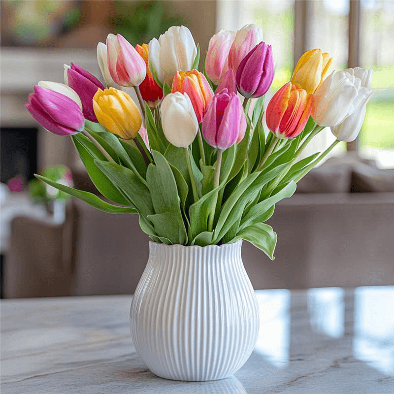 Like a burst of the spring time are these tulip flowers. A brightly colored bell shaped on a stems that are sure to bring happiness and joy wherever they are placed.