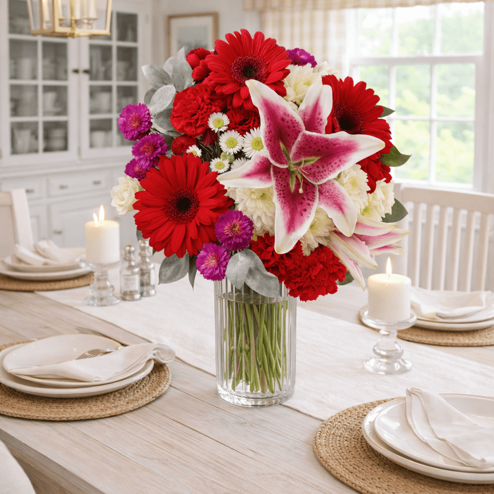Express your love and affection to that special person or send flowers as a way to express your gratitude to a caregiver, a best friend or your neighbor this Valentine's Day. Our Valentines Day Big Hug Bouquets will convey the truest appreciation of love and friendship. If you're hosting an event or a singles party, consider decorating your space with these striking and gorgeous bouquets filled with red and white flowers.