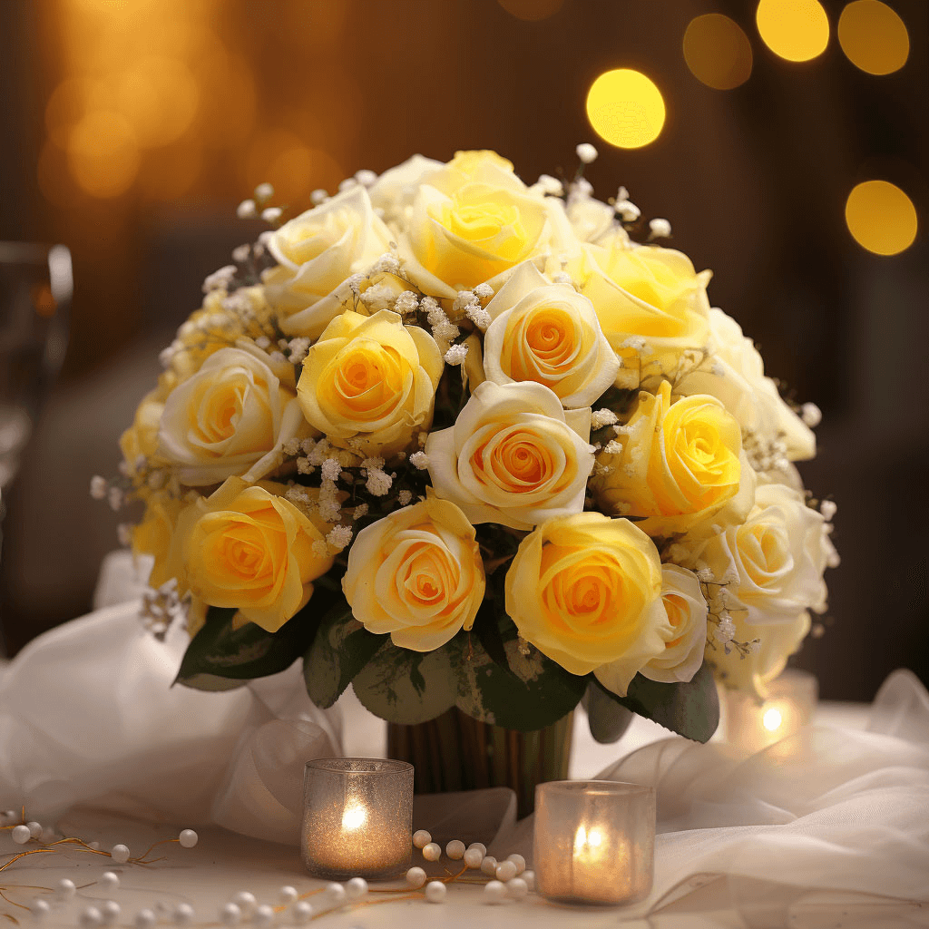 These Vibrant White and Yellow Classic Wedding Rose Centerpieces are the perfect contrast between elegance and Springtime brightness.