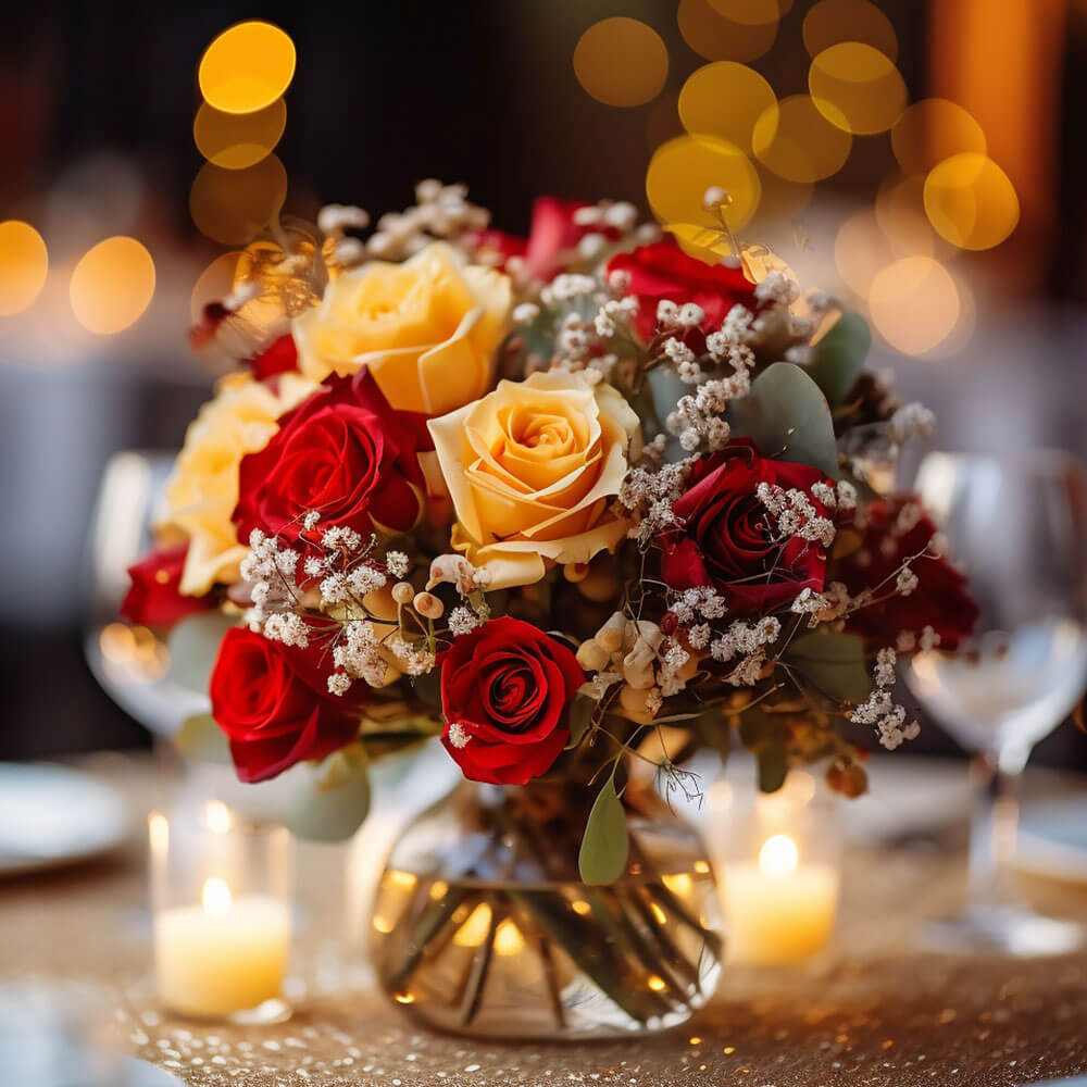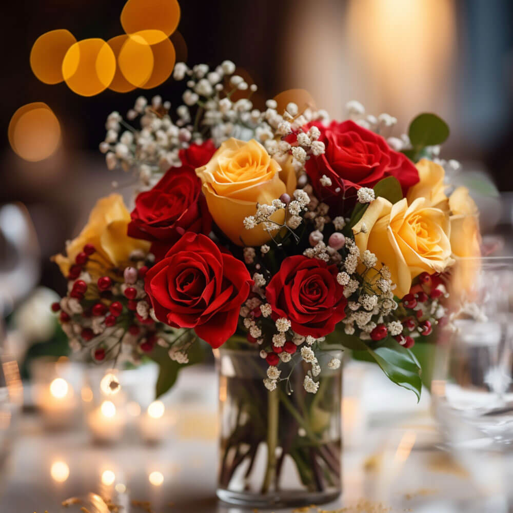 Buy These Gorgeous Wedding Rose Centerpieces with Yellow and Red Roses and bring out a little brightness on your special day!