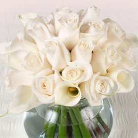 Each centerpiece is a divine arrangement of 28 flowers. Vase not included. Each box comes with 3 heavenly centerpieces and each arrangement contains; 21 stems of Ivory Roses and 7 stems of Ivory Calla Lilies.